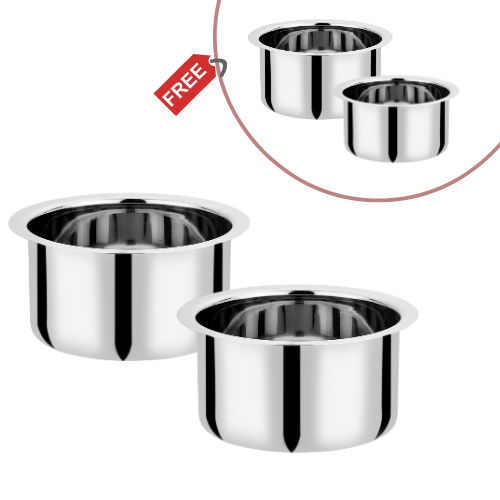Made from high quality stainless steel ,Vinod Stainless Steel Topes are designed with Flat Bottoms which is Induction Friendly. Cook your favorite food ,curries in Vinod steel topes. They are compact in size and are easy to store in kitchen shelves and cupboards. These topes are food-safe, durable and ideal for everyday use.