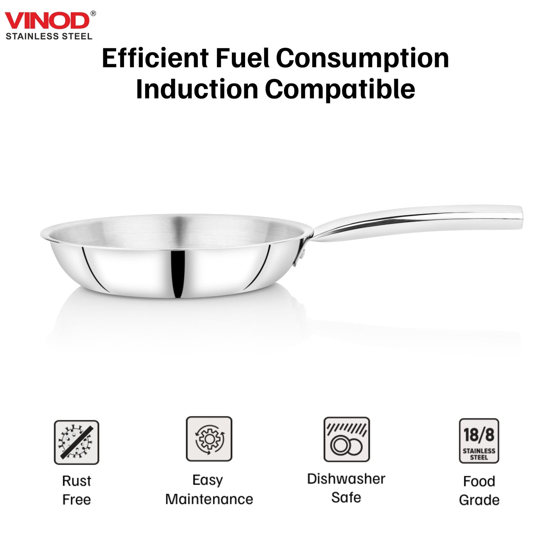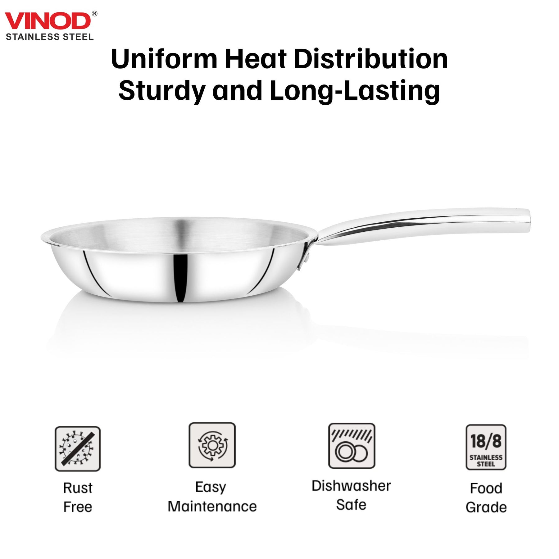 Vinod – Claro Heavy Gauge Stainless Steel Fry Pan (Plain) with 1.5 mm Thickness 1000 ml