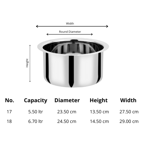 • Package Content: Set of 2 Vinod Stainless Steel Flat  Bottom Topes without Lid – Capacity 5.5 Ltr & 6.7 ltr