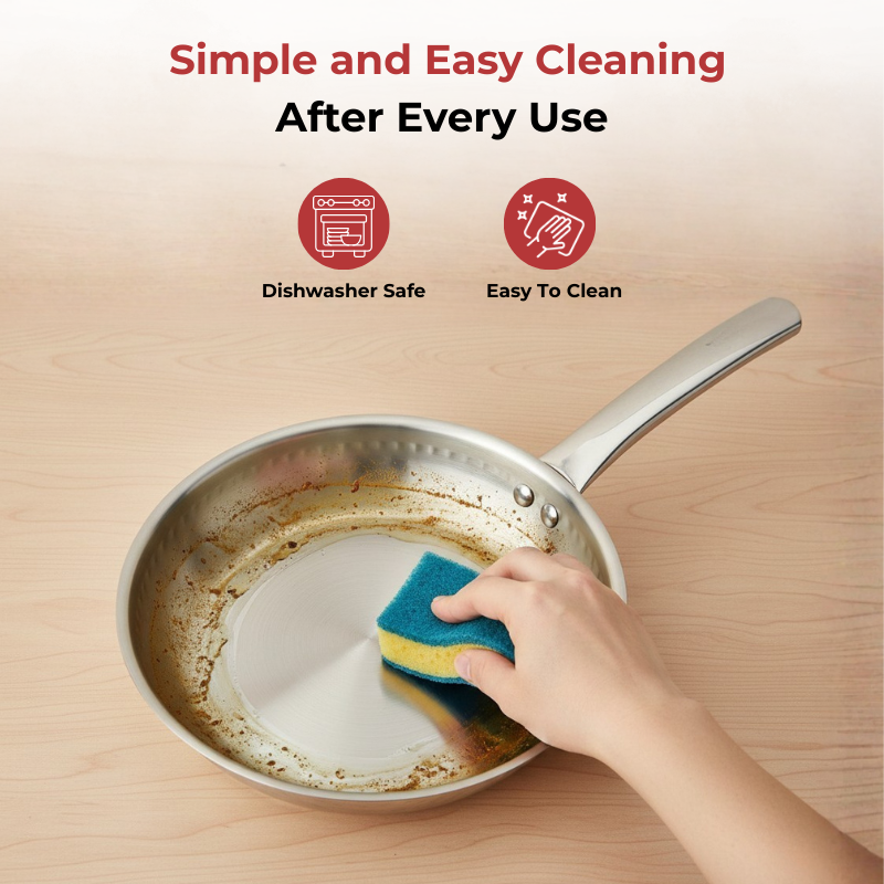 The smooth, polished stainless steel surface makes cleaning a breeze. Whether you use a dishwasher or wash by hand, food residue comes off easily