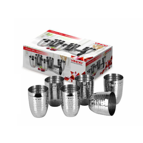 Vinod Stainless Steel Premium Glass (Hammered) – Six Glasses in one Box (300 ml)