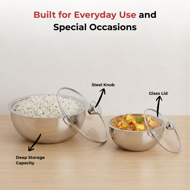 Use it for serving or storing gravies, curries, soup, yoghurt / curd, etc.