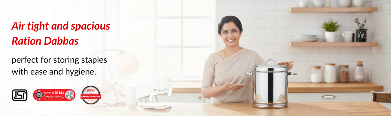 You can conveniently buy the best Ration Dabba online at VINOD Steel’s official website, with fast and secure delivery straight to your doorstep. Invest in VINOD Steel’s premium Ration Dabba for a reliable and stylish storage solution that keeps your kitchen essentials fresh and organized.