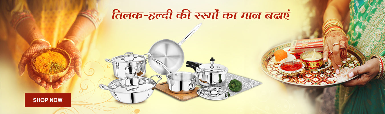 Make your Tilak and Haldi ceremonies memorable with thoughtful return gifts from Vinod Steel. Explore our exclusive collection of high-quality stainless steel products that combine tradition, utility, and style.