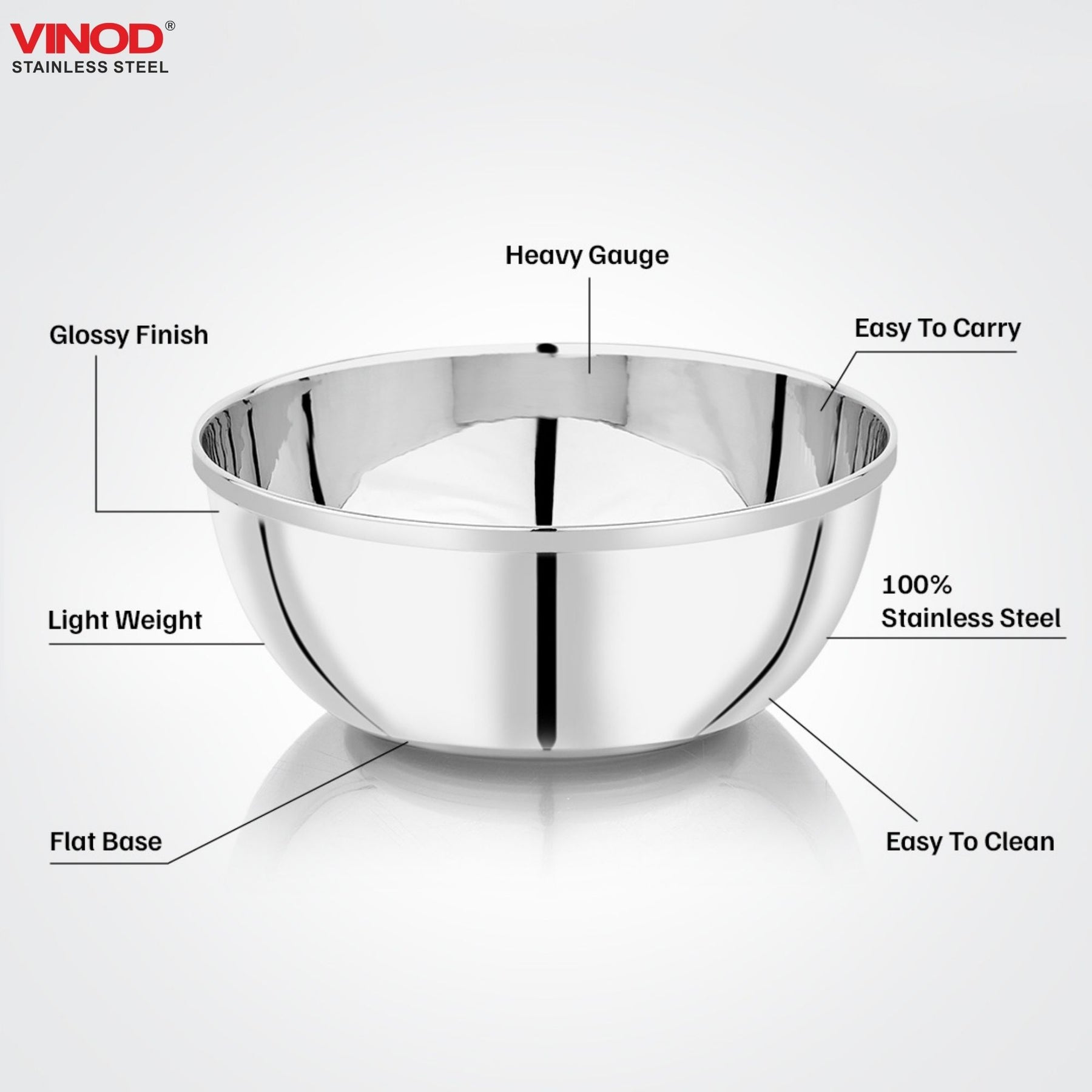 विनोद स्टेनलेस स्टील के कटोरे लंबे समय तक चलने के लिए सर्वोत्तम गुणवत्ता वाली सामग्री से बने होते हैं।