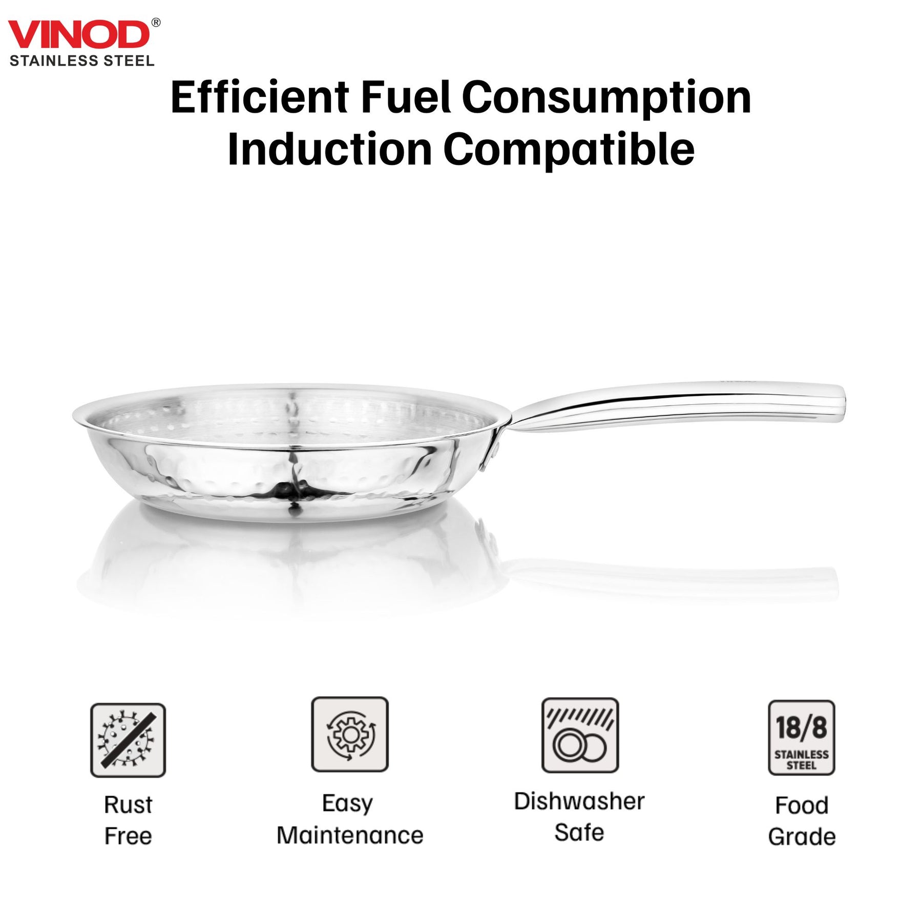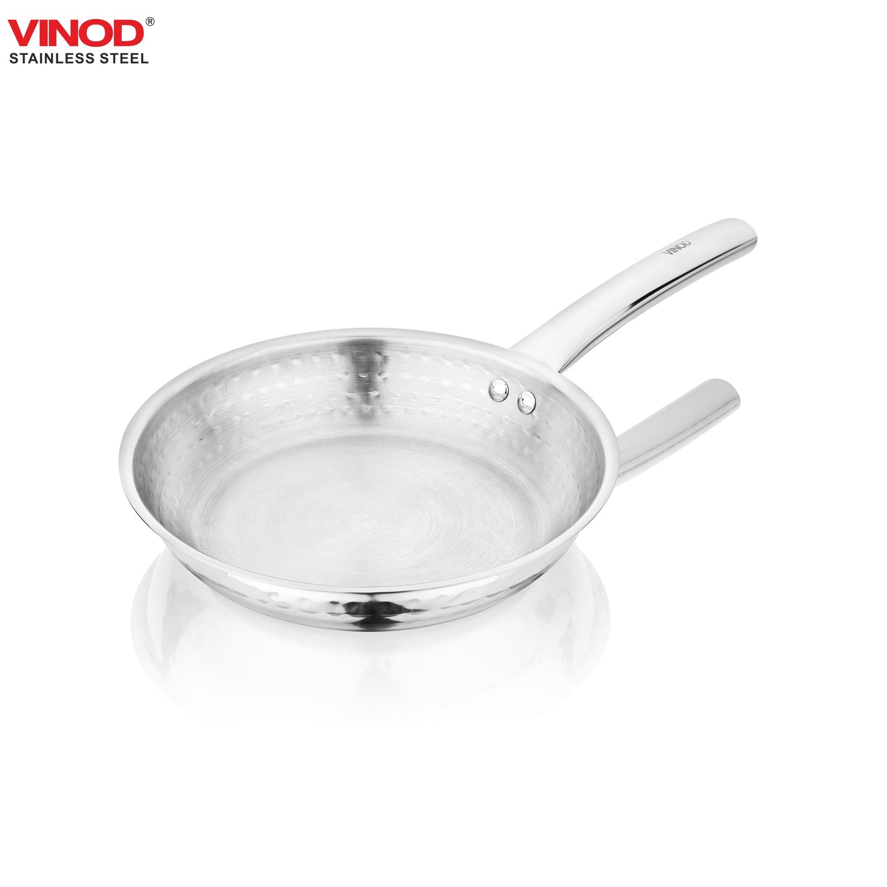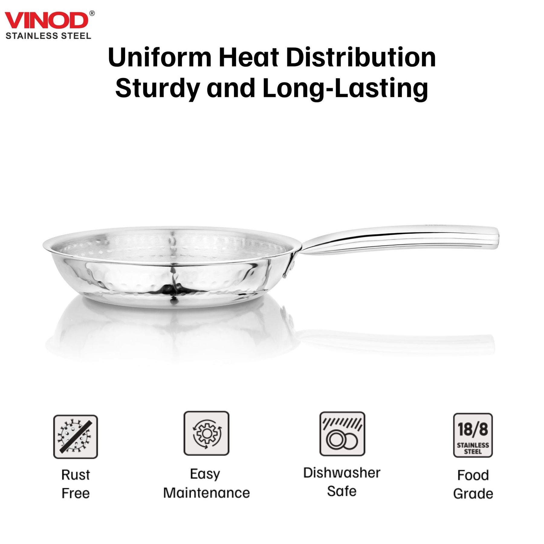 विनोद - क्लारो हेवी गेज स्टेनलेस स्टील हैमर्ड फ्राई पैन 1.5 मिमी मोटाई के साथ 1000 मिली