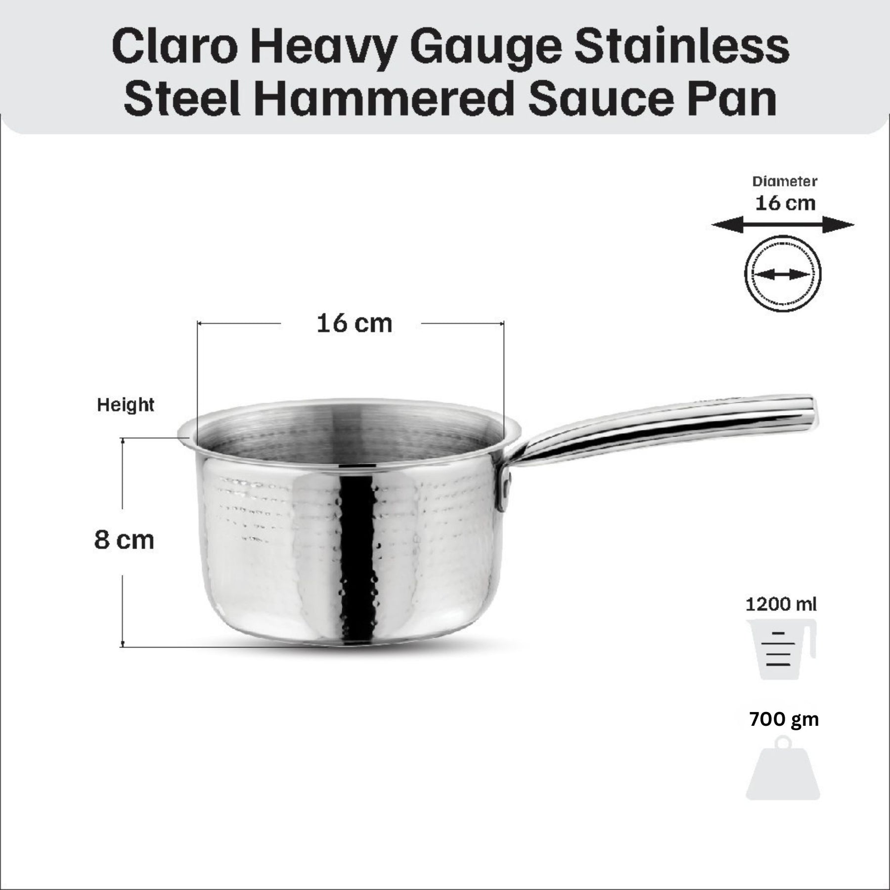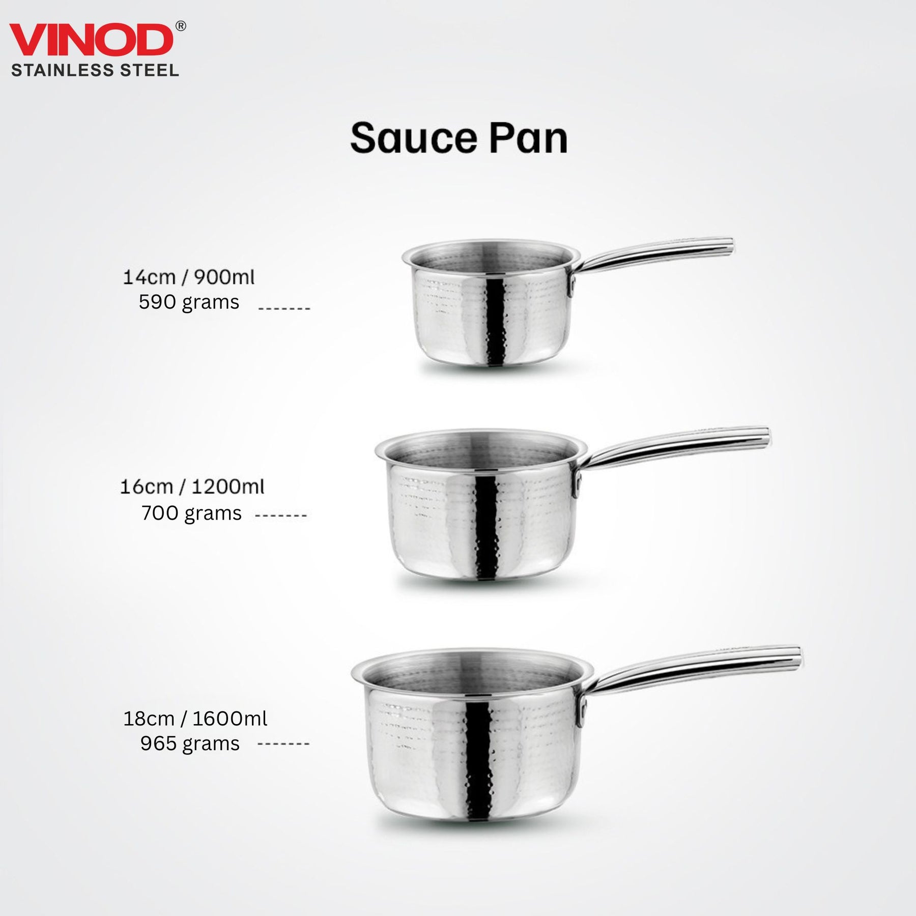 विनोद - क्लारो हेवी गेज स्टेनलेस स्टील हैमर्ड सॉस पैन, 1.5 मिमी - क्षमता 1200 मिलीलीटर