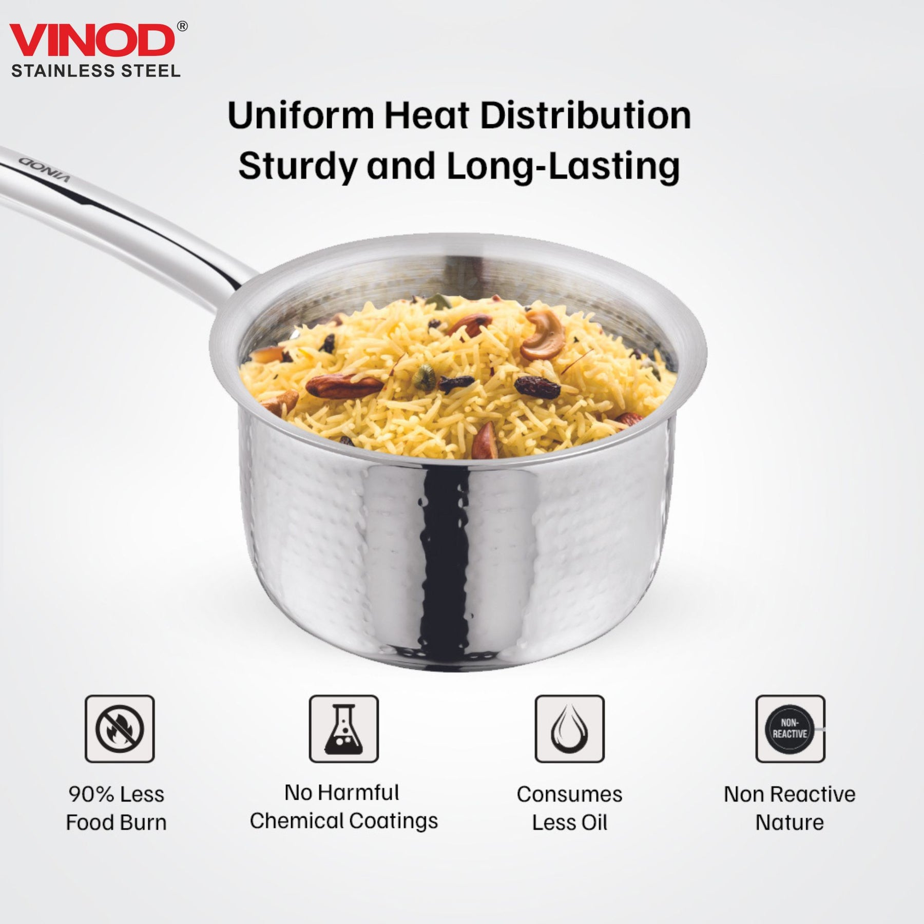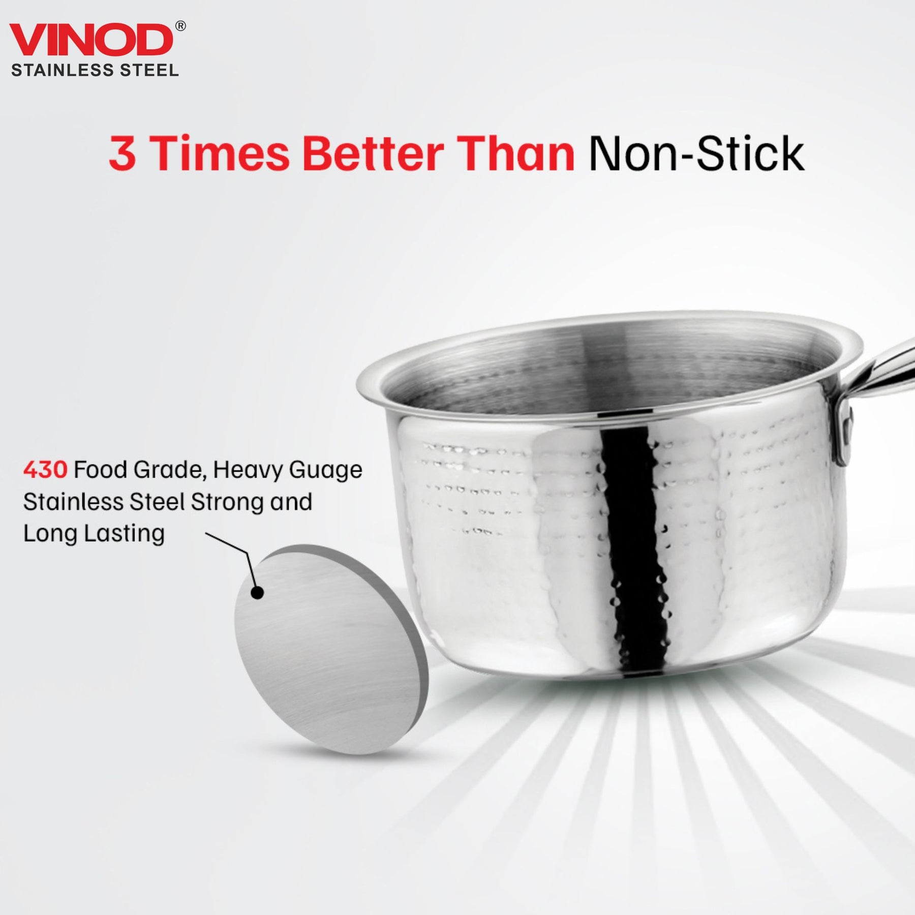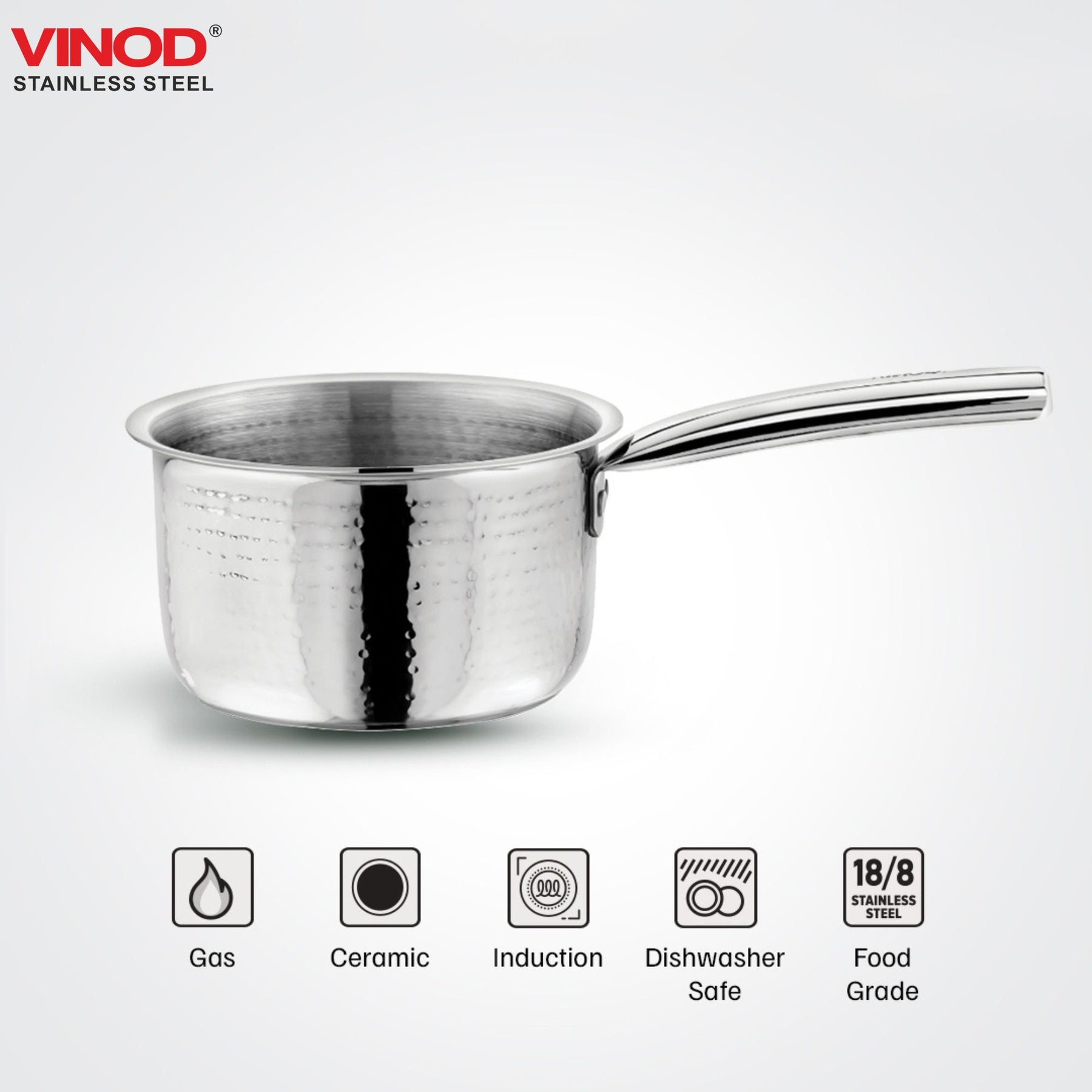 विनोद - क्लारो हेवी गेज स्टेनलेस स्टील हैमर्ड सॉस पैन, 1.5 मिमी - क्षमता 1600 मिलीलीटर