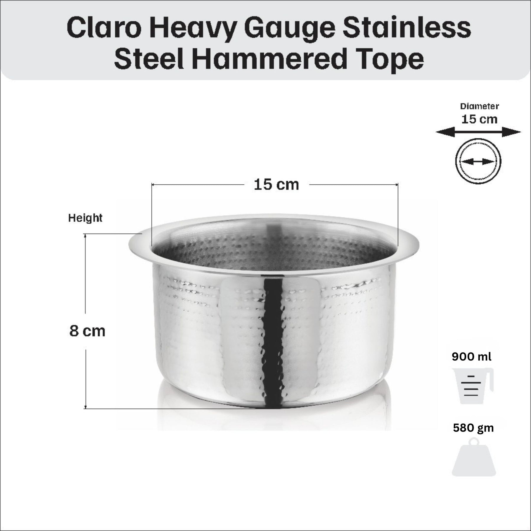 विनोद - क्लारो हेवी गेज स्टेनलेस स्टील हैमर्ड टोपे, 1.5 मिमी - क्षमता 900 मिलीलीटर