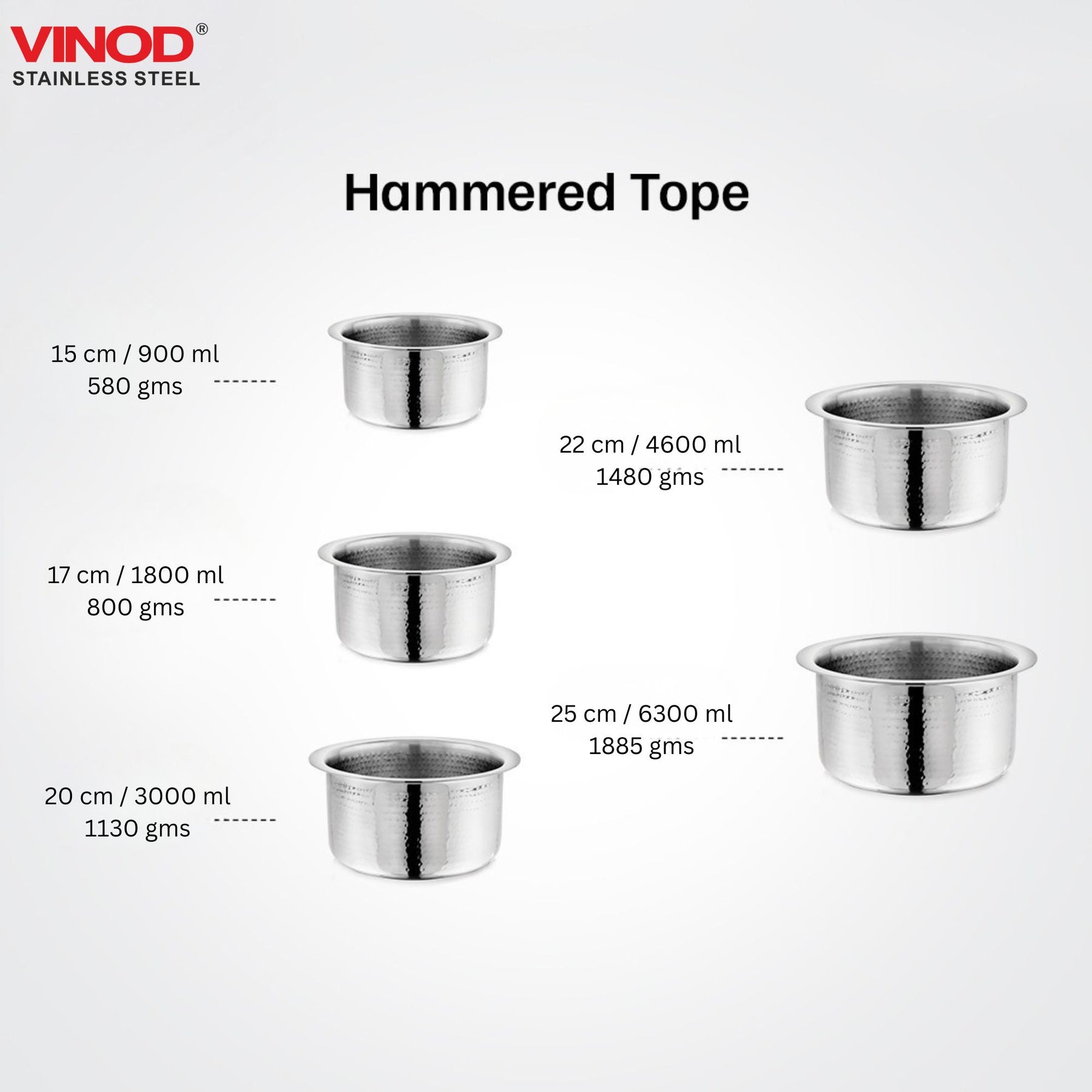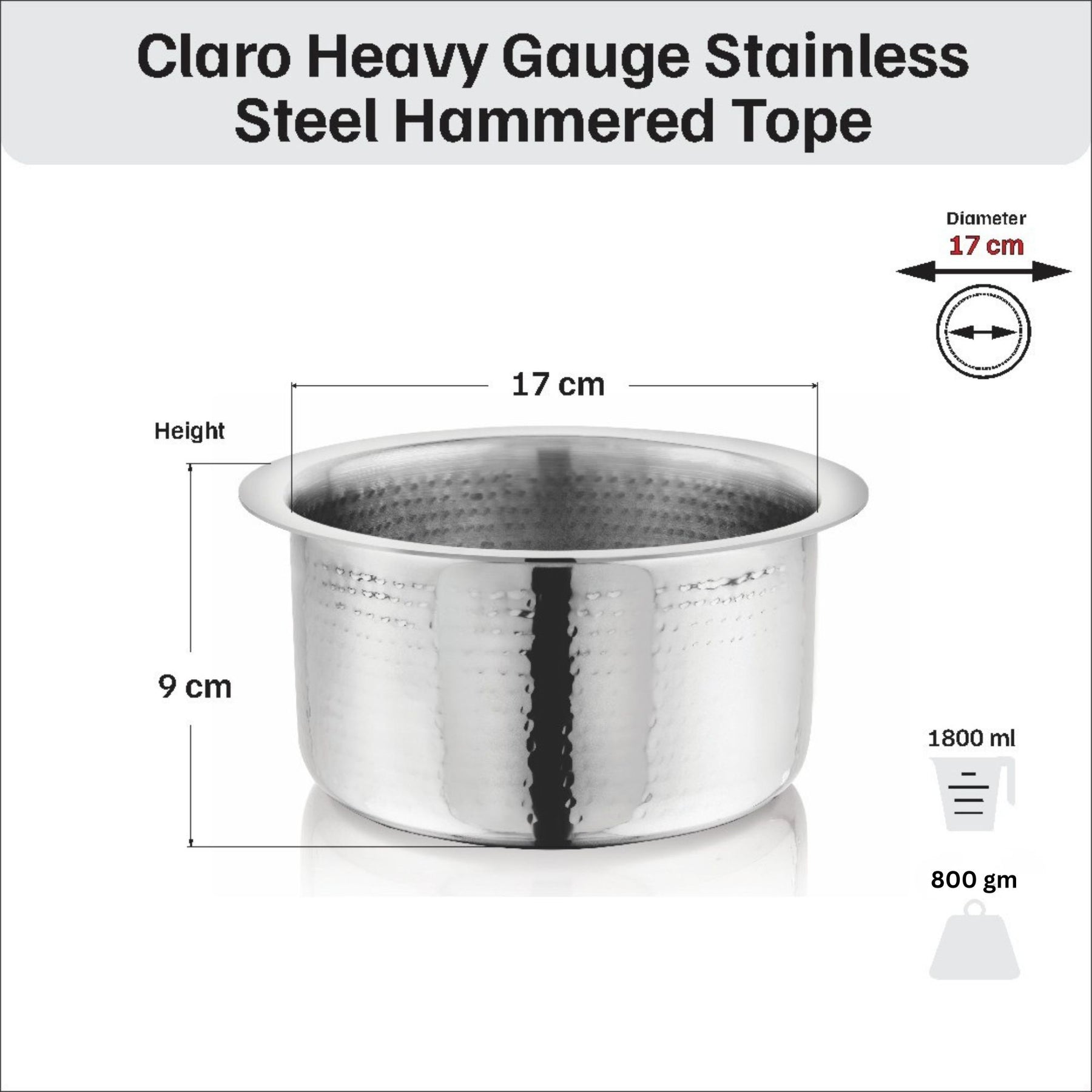 विनोद - क्लारो हेवी गेज स्टेनलेस स्टील हैमर्ड टोपे, 1.5 मिमी - क्षमता 1800 मिलीलीटर