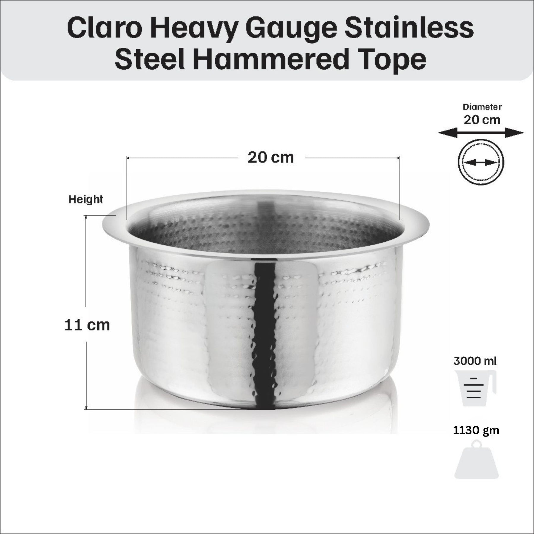 विनोद - क्लारो हेवी गेज स्टेनलेस स्टील हैमर्ड टोपे, 1.5 मिमी - क्षमता 3000 मिलीलीटर