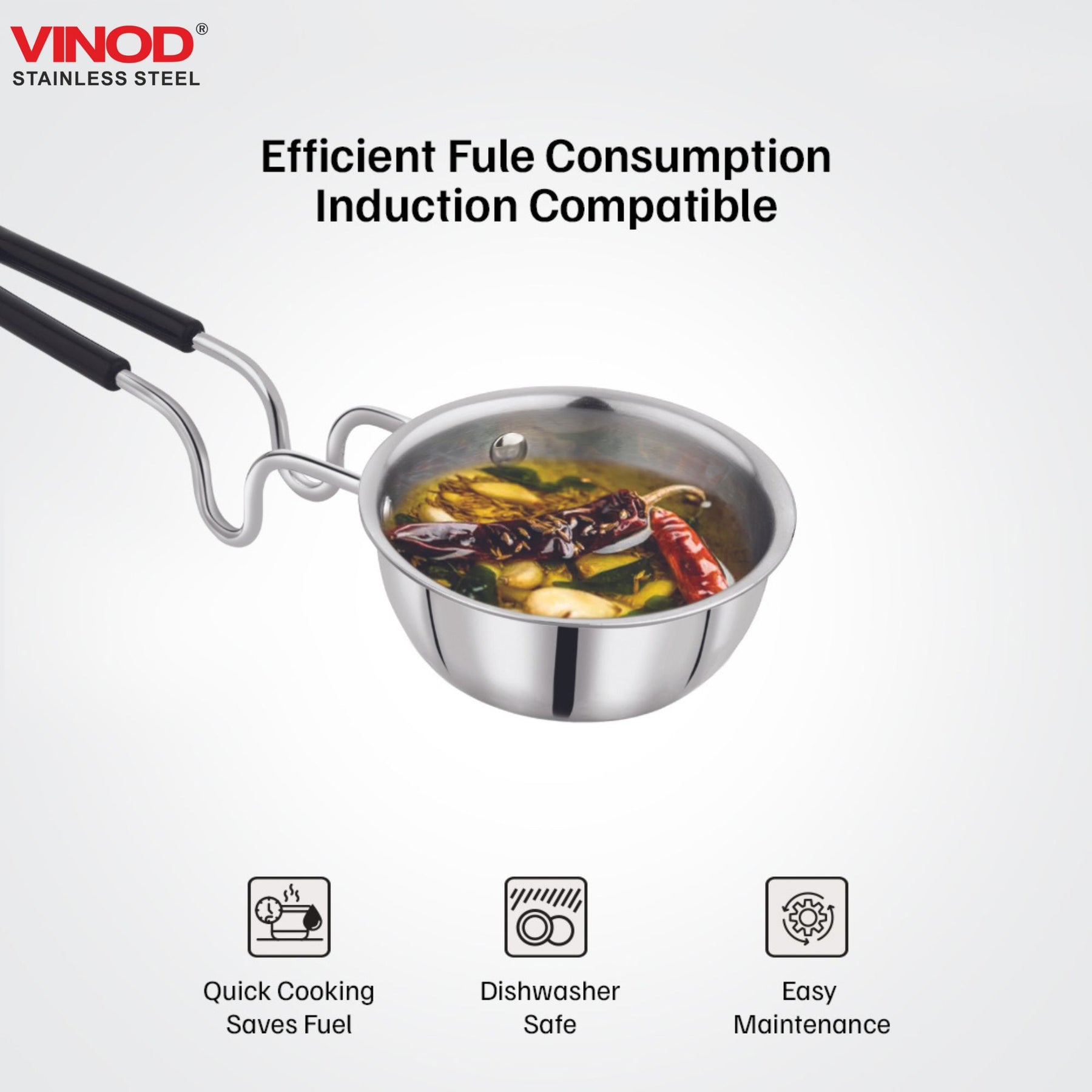 विनोद - क्लारो हेवी गेज स्टेनलेस स्टील तड़का पैन (प्लेन), 1.5 मिमी