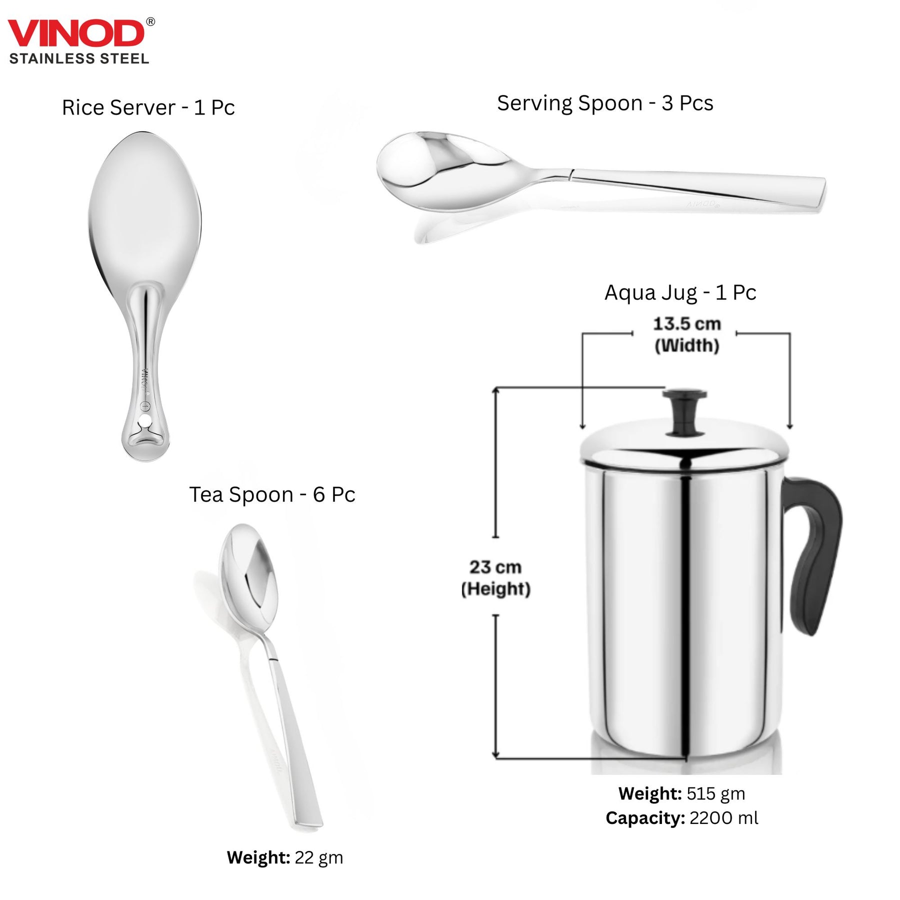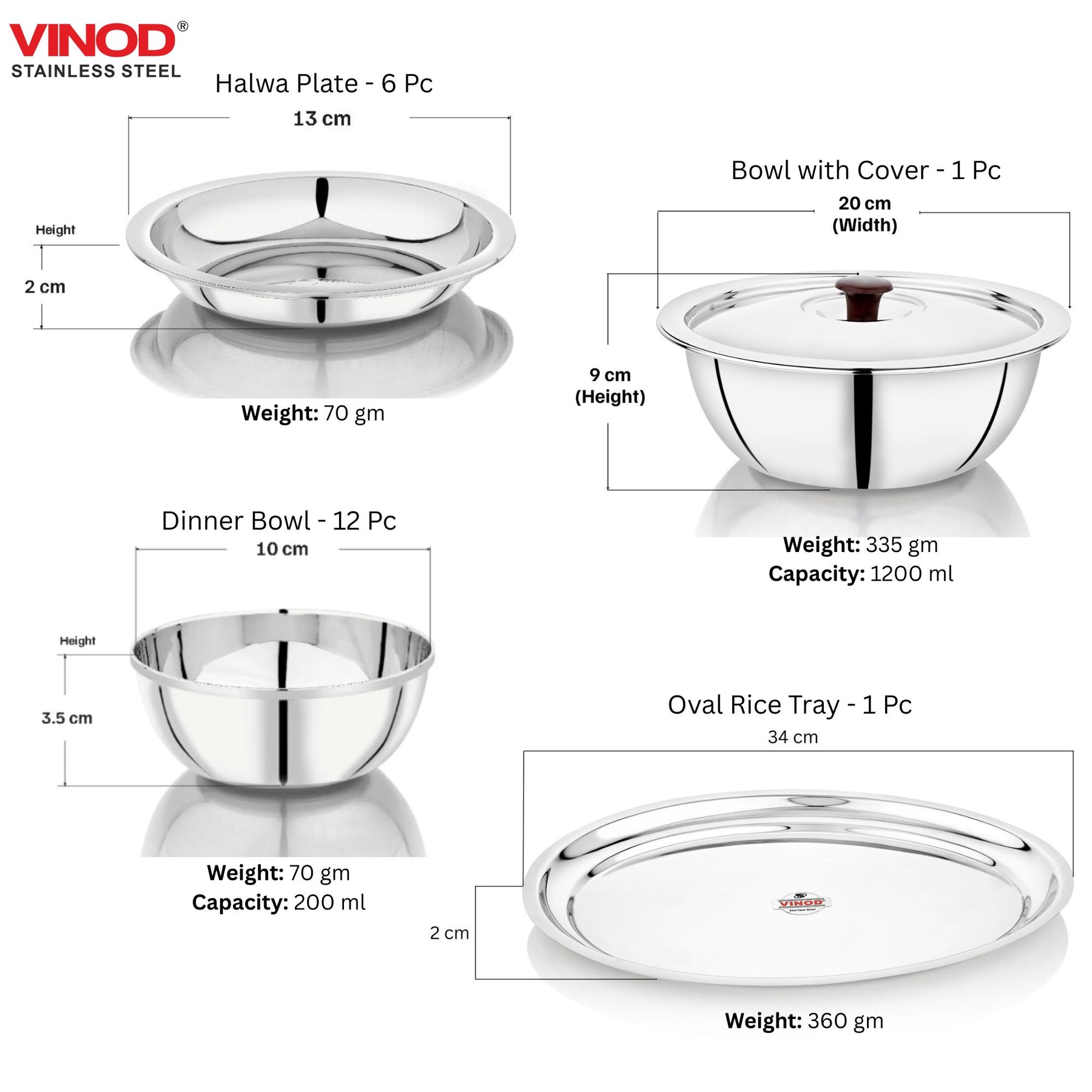 • स्टेनलेस स्टील डिनर सेट में शामिल हैं :