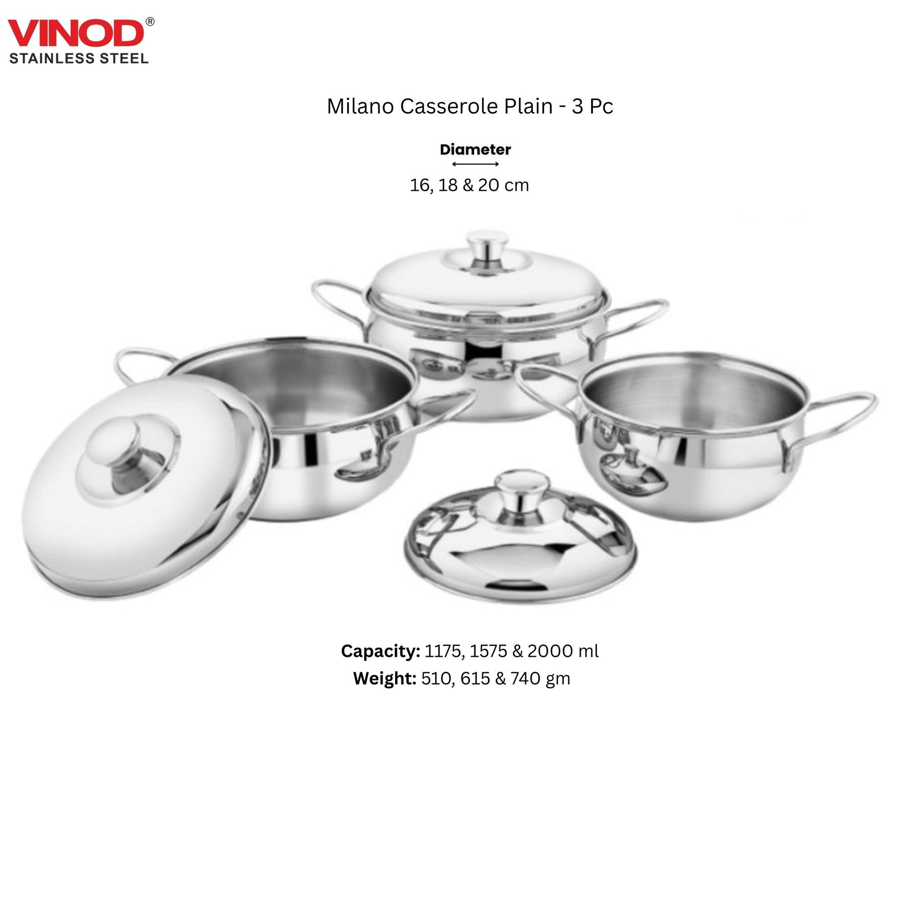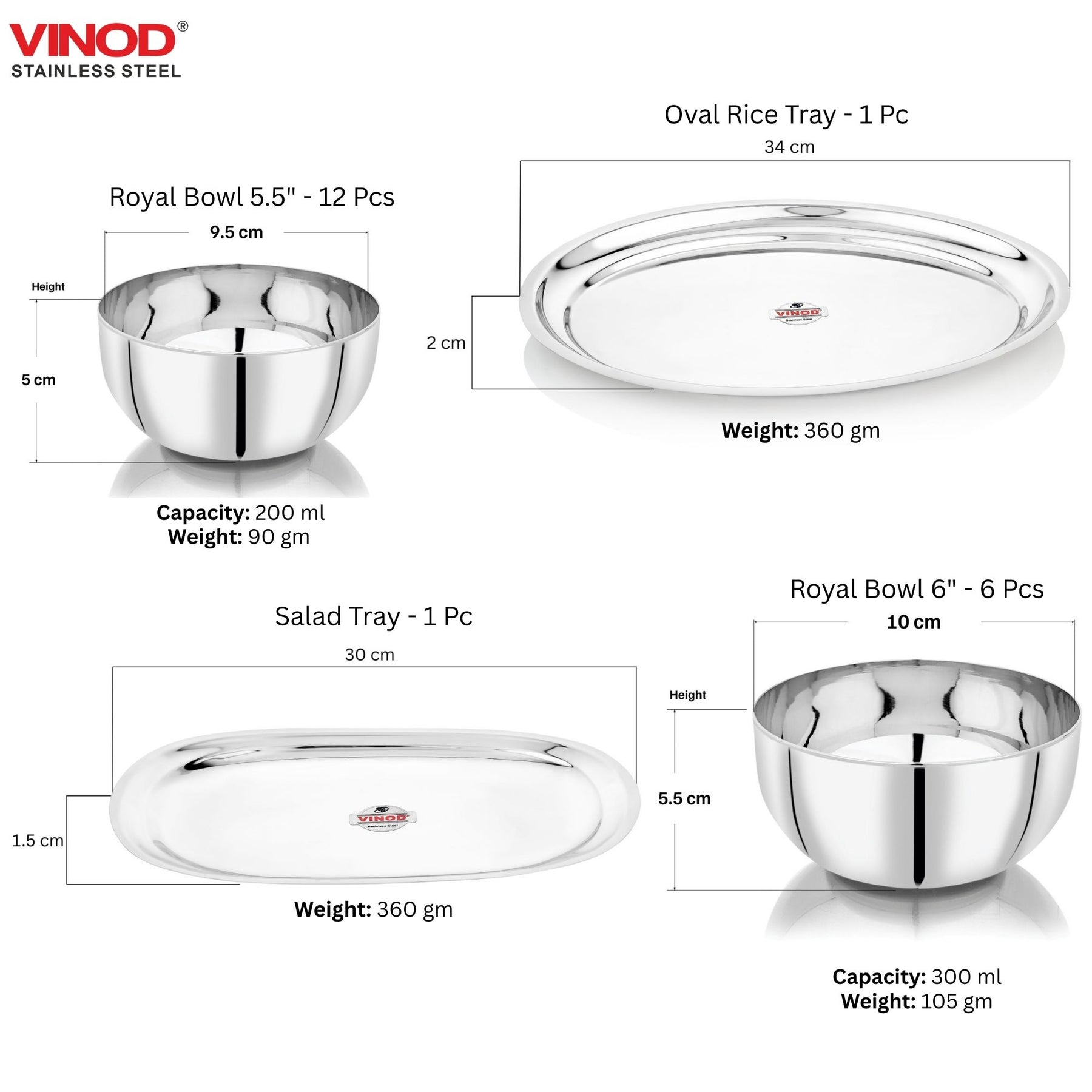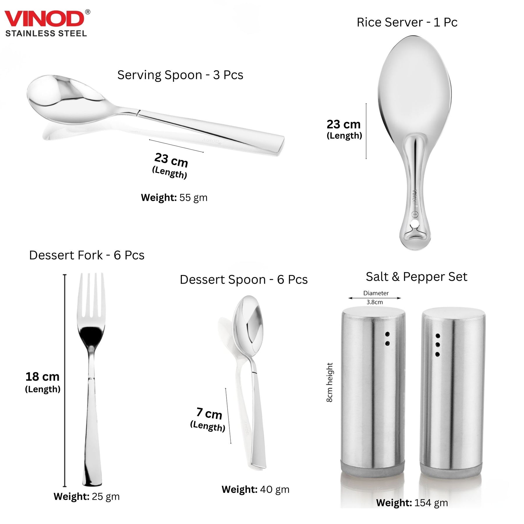 विनोद स्टेनलेस स्टील 61 पीस डिनर सेट प्रीमियम किचन सेट टिकाऊ, डिशवॉशर सुरक्षित, गृहप्रवेश उपहार के लिए भारी गेज डिनर सेट, सिल्वर