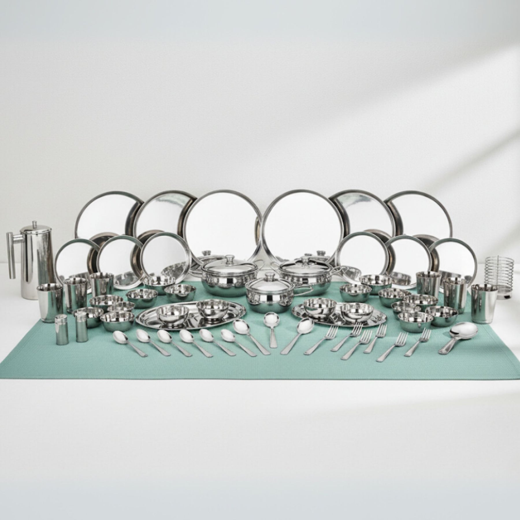 • आसान रखरखाव : स्टेनलेस स्टील अपनी आसान सफाई के लिए जाना जाता है। हमारा डिनर सेट डिशवॉशर में धोने के लिए सुरक्षित है, जिससे सफाई आसान हो जाती है। हवा।