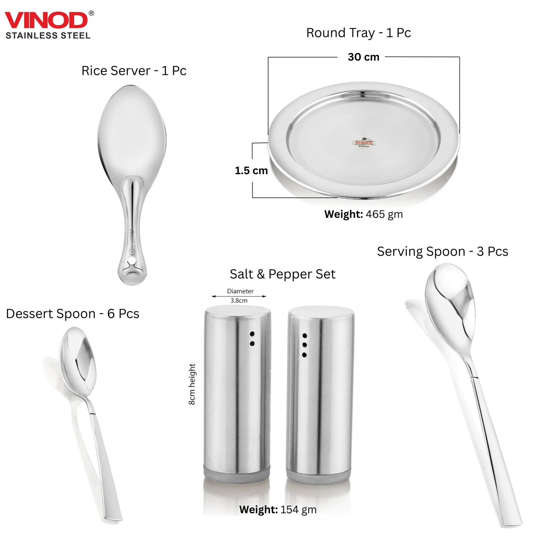 • स्टेनलेस स्टील डिनर सेट में शामिल हैं :