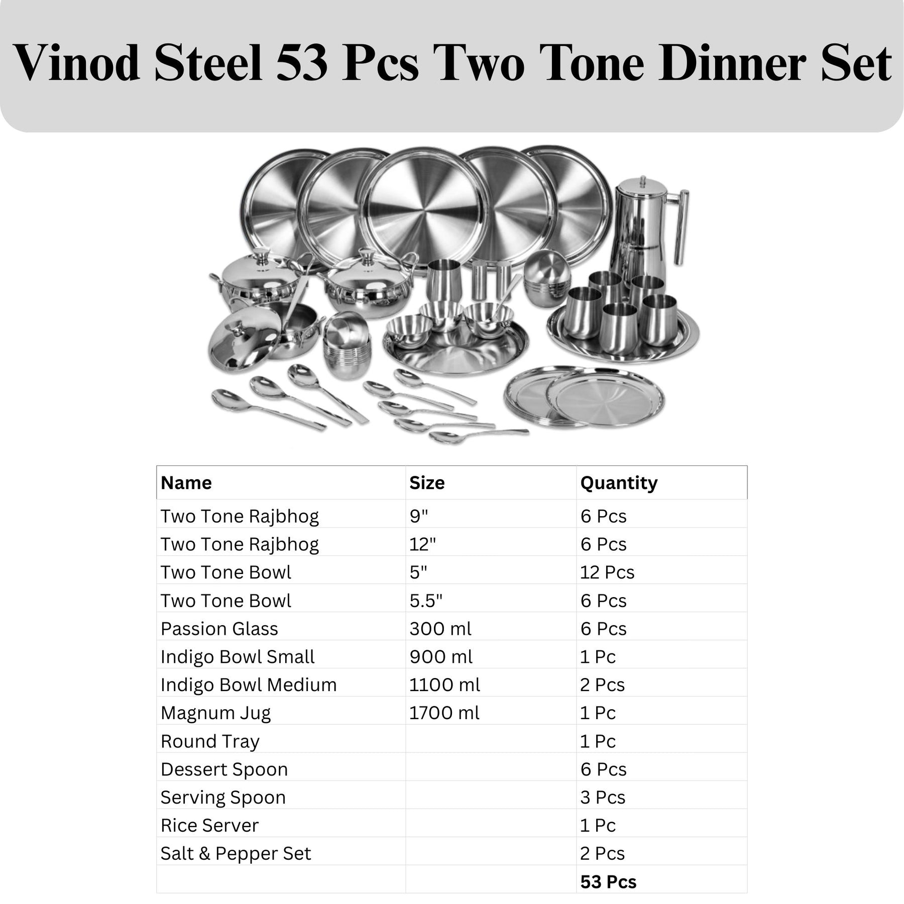 विनोद स्टेनलेस स्टील 53 पीस टू टोन डिनर सेट