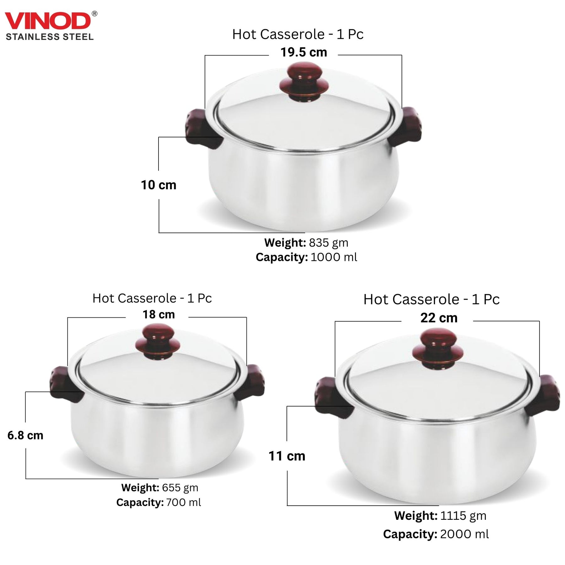 • 1 पीस बेली हॉट कैसरोल - 2000 मिली,