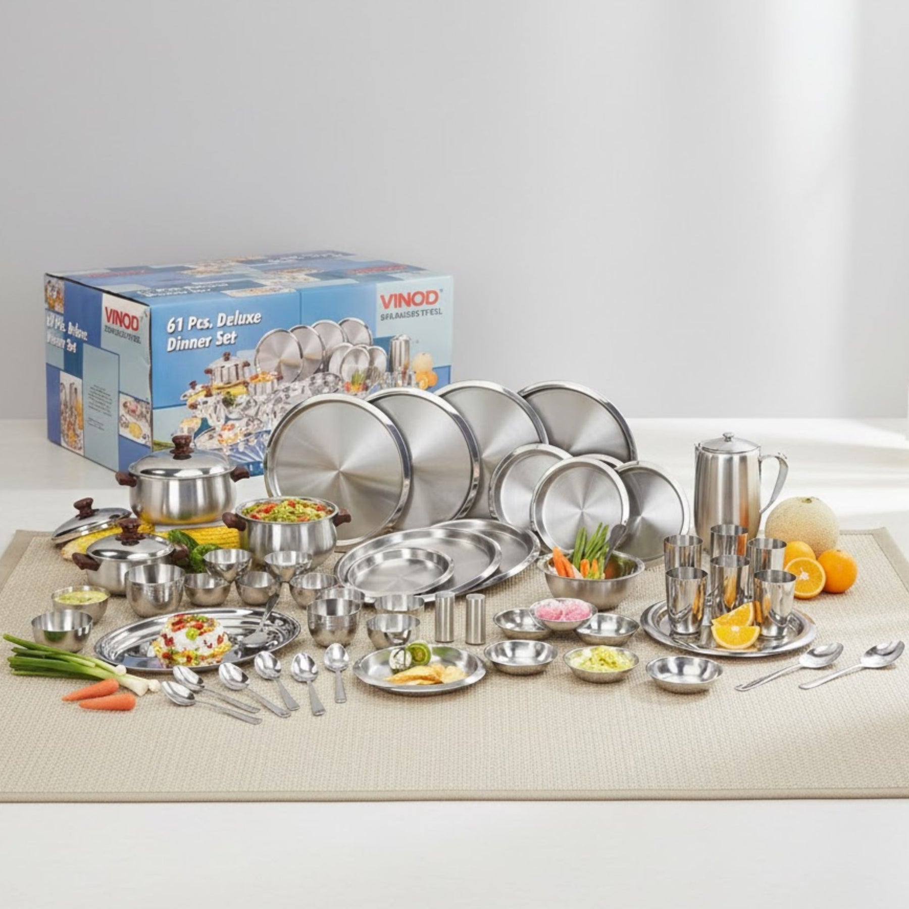 • स्टेनलेस स्टील डिनर सेट में शामिल हैं :
