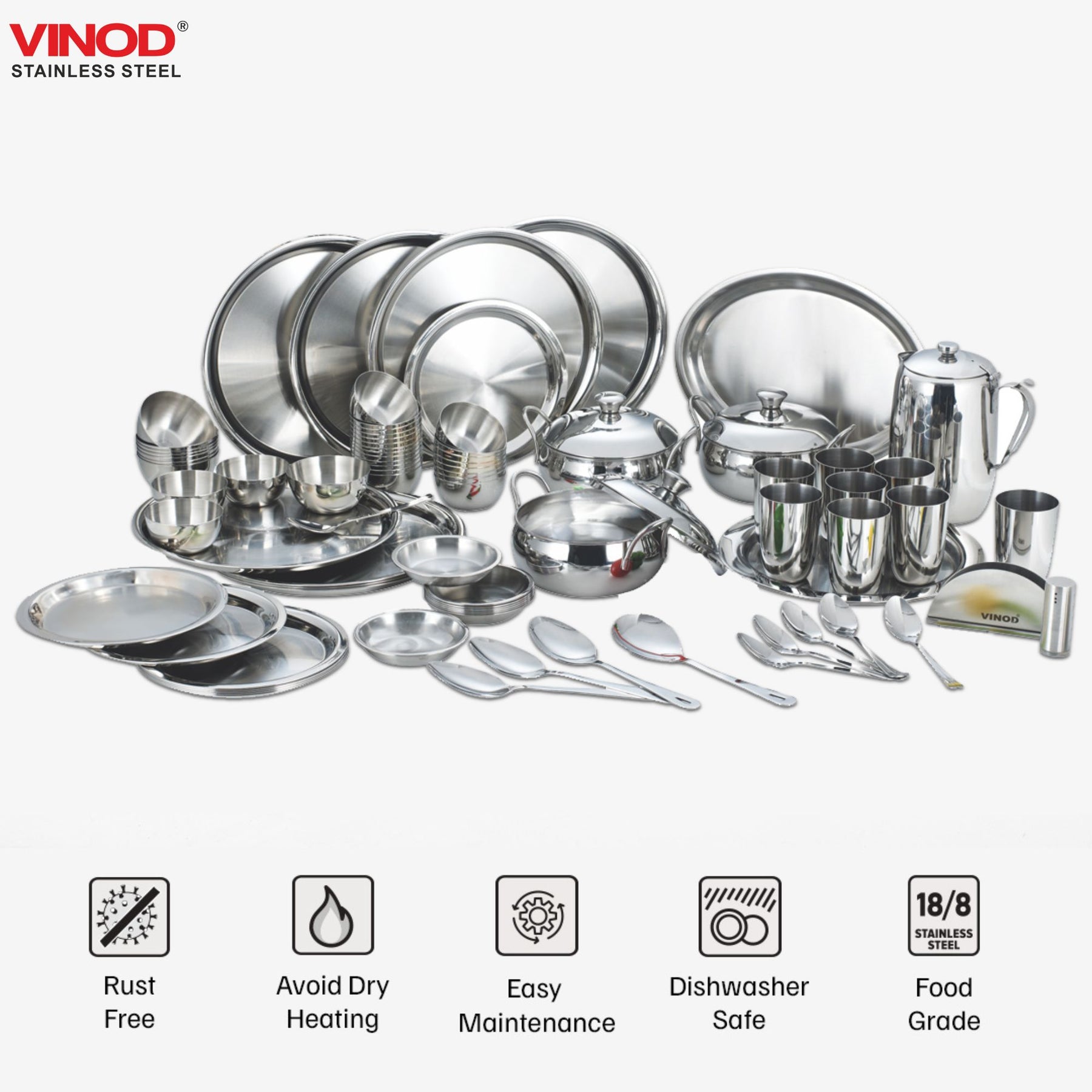 विनोद स्टेनलेस स्टील 77 पीस टू टोन डिनर सेट आठ लोगों के लिए