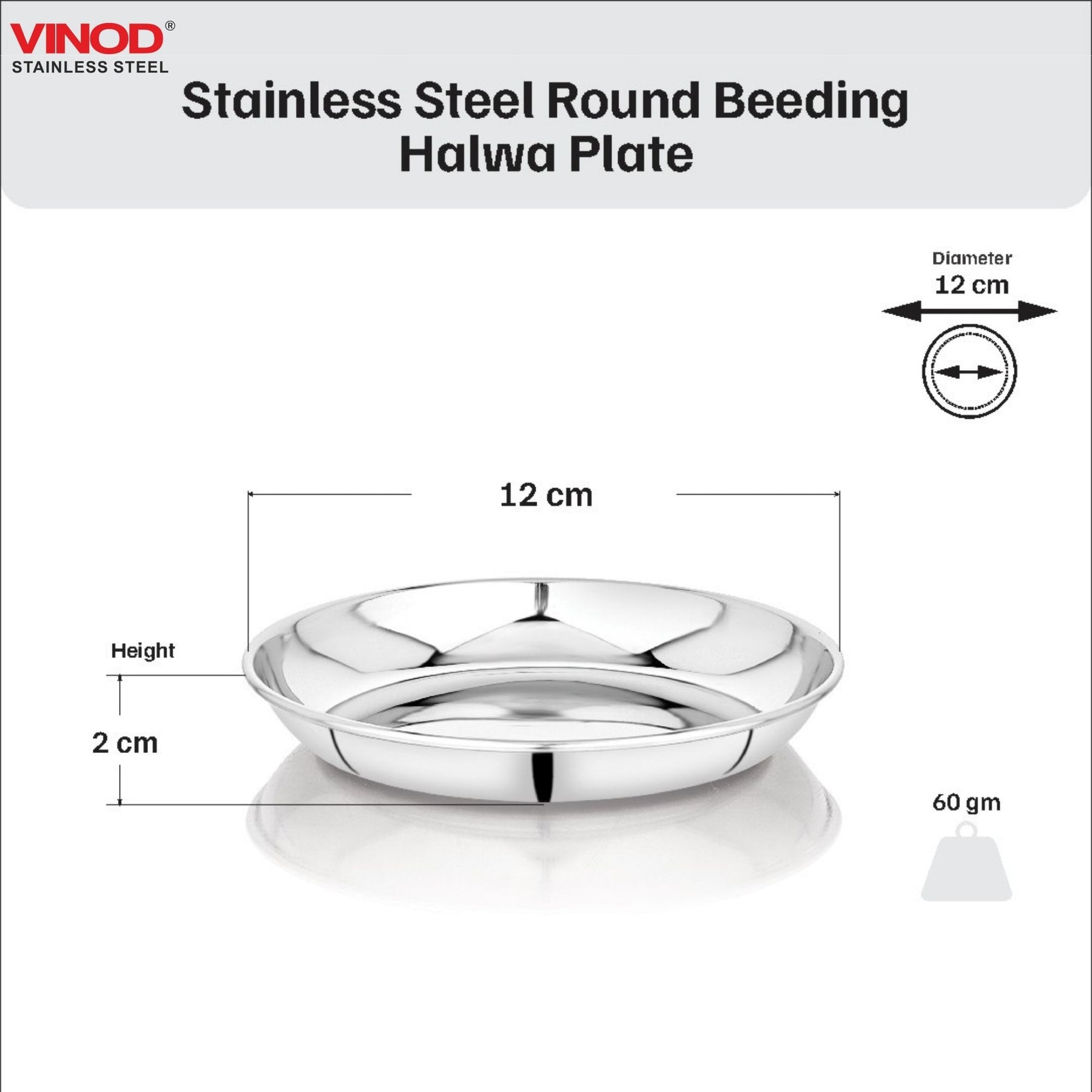 विनोद स्टेनलेस स्टील गोल बीडिंग हलवा प्लेट 6 पीस का सेट, व्यास 12.2 सेमी
