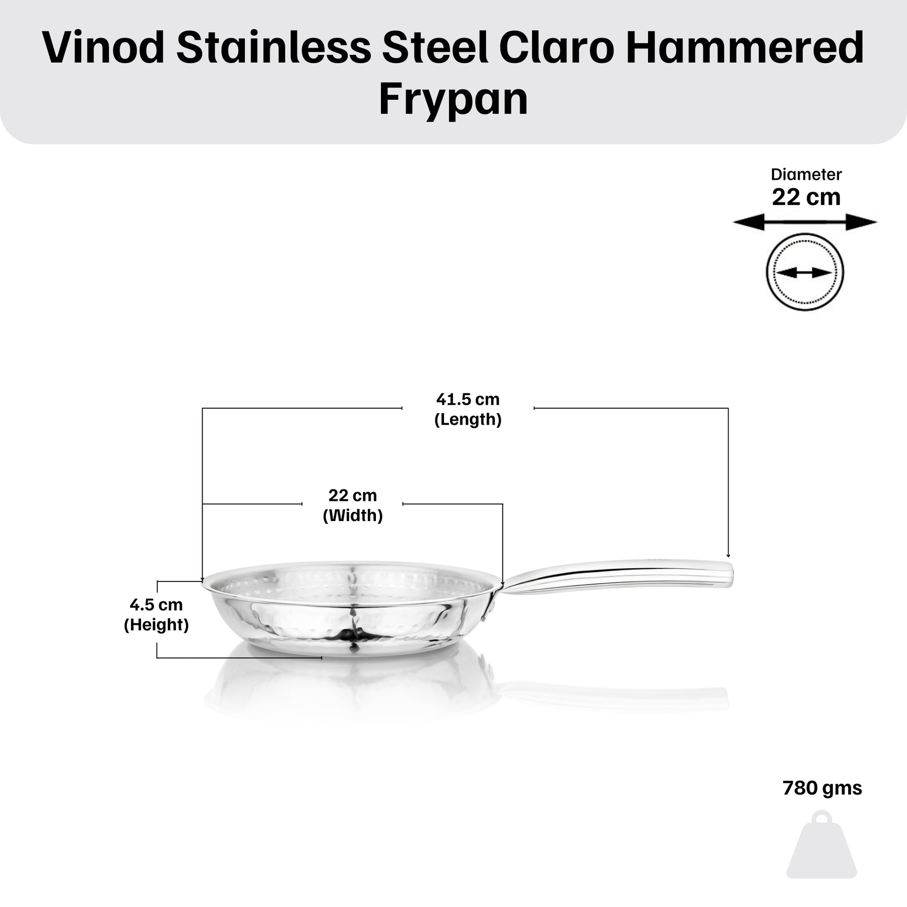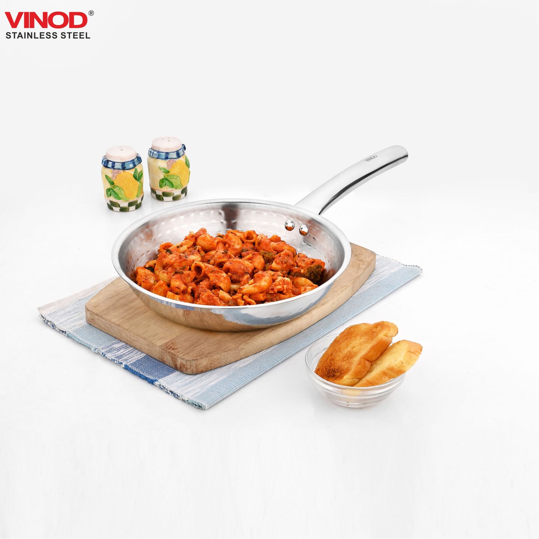 विनोद - क्लारो हेवी गेज स्टेनलेस स्टील हैमर्ड फ्राई पैन 1.5 मिमी मोटाई के साथ 1400 मिली