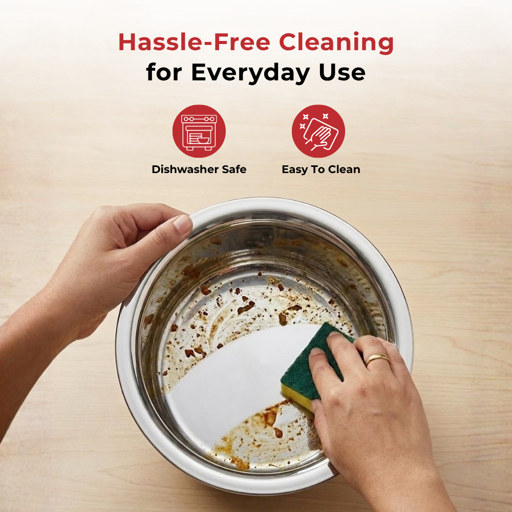 • Flat Bottom Design: Ensures even heat distribution and stable placement on gas stoves, making cooking faster and more efficient.