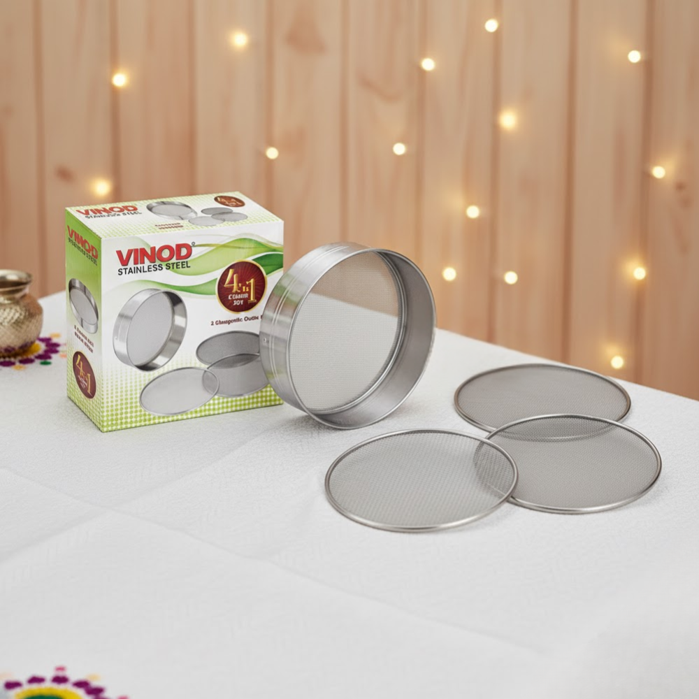 विनोद स्टेनलेस स्टील 4 इन 1 आटे की चलनी सेट