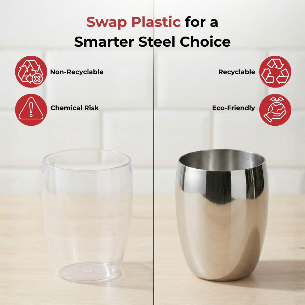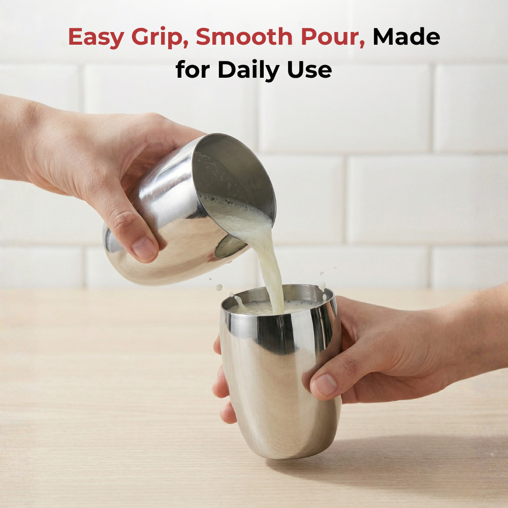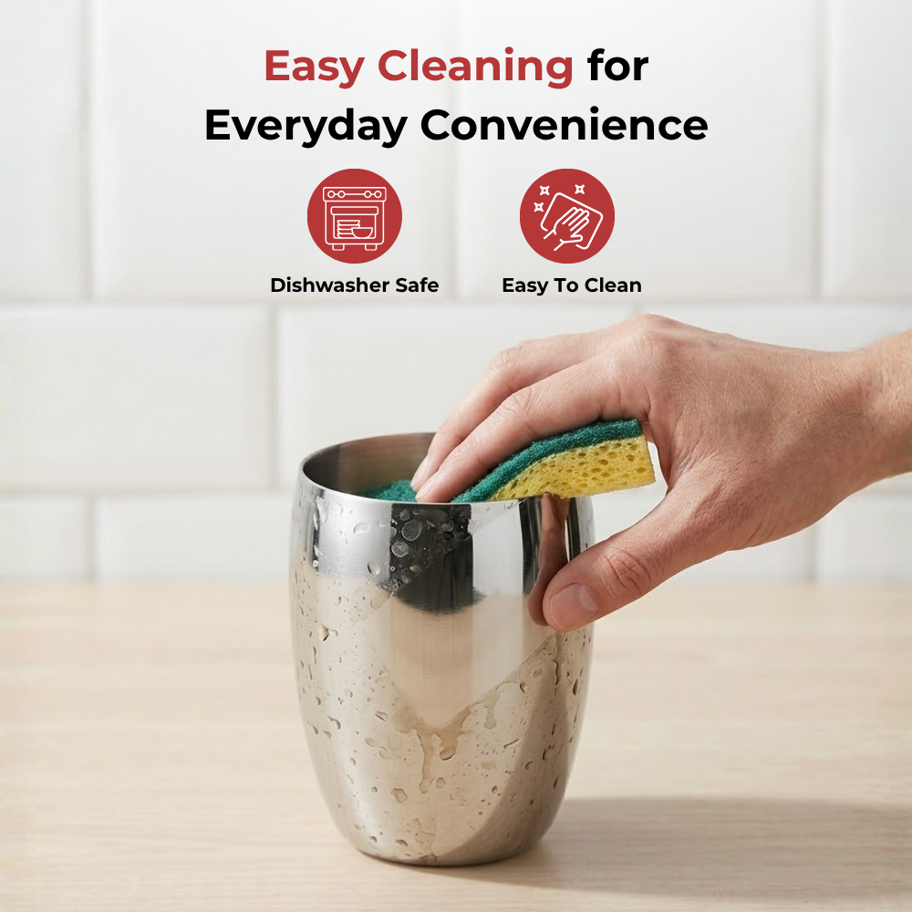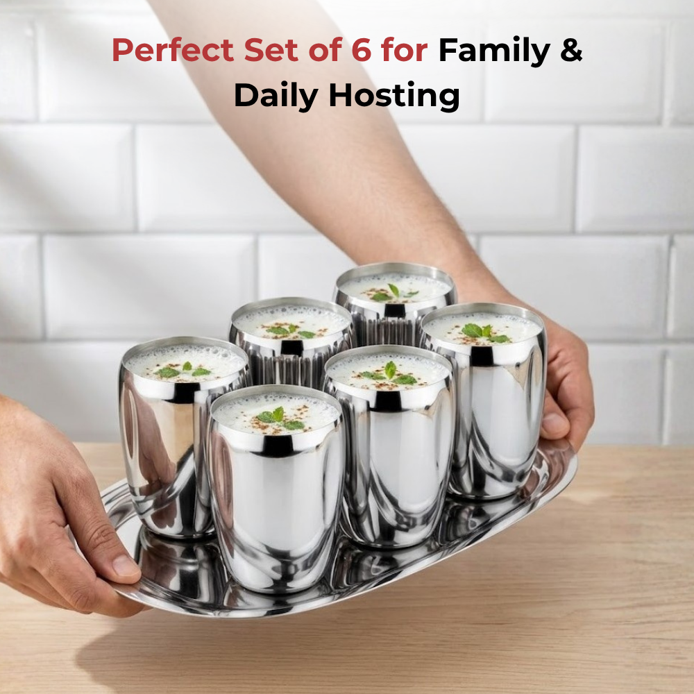 उच्चतम गुणवत्ता वाले स्टेनलेस स्टील से बना, विनोद का स्टेनलेस स्टील मैंगो ग्लास डिशवॉशर सुरक्षित, साफ करने में आसान और बेहद टिकाऊ है। 6 ग्लासों का एक खूबसूरत सेट, यह चमकदार मिरर फ़िनिश के साथ आता है।
