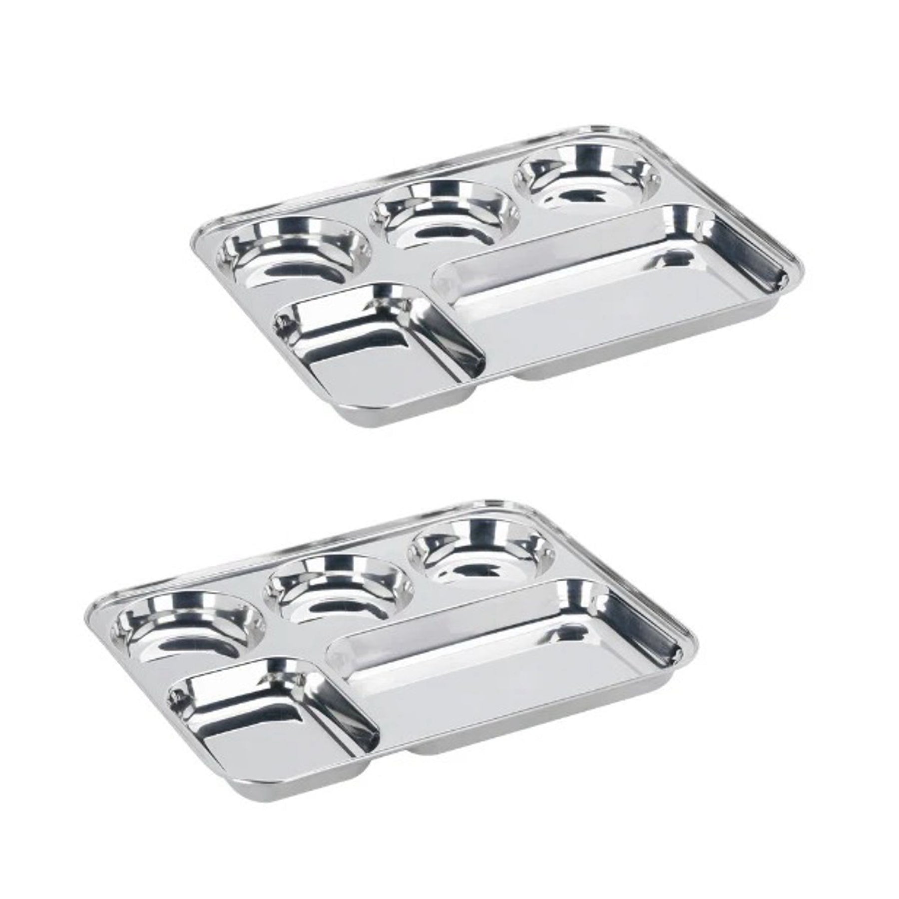 विनोद स्टेनलेस स्टील 5 कम्पार्टमेंट मेस ट्रे गोल किनारों के साथ / आयताकार स्टील थाली / लंच और डिनर प्लेट / भोजन थाली - 2 पीस