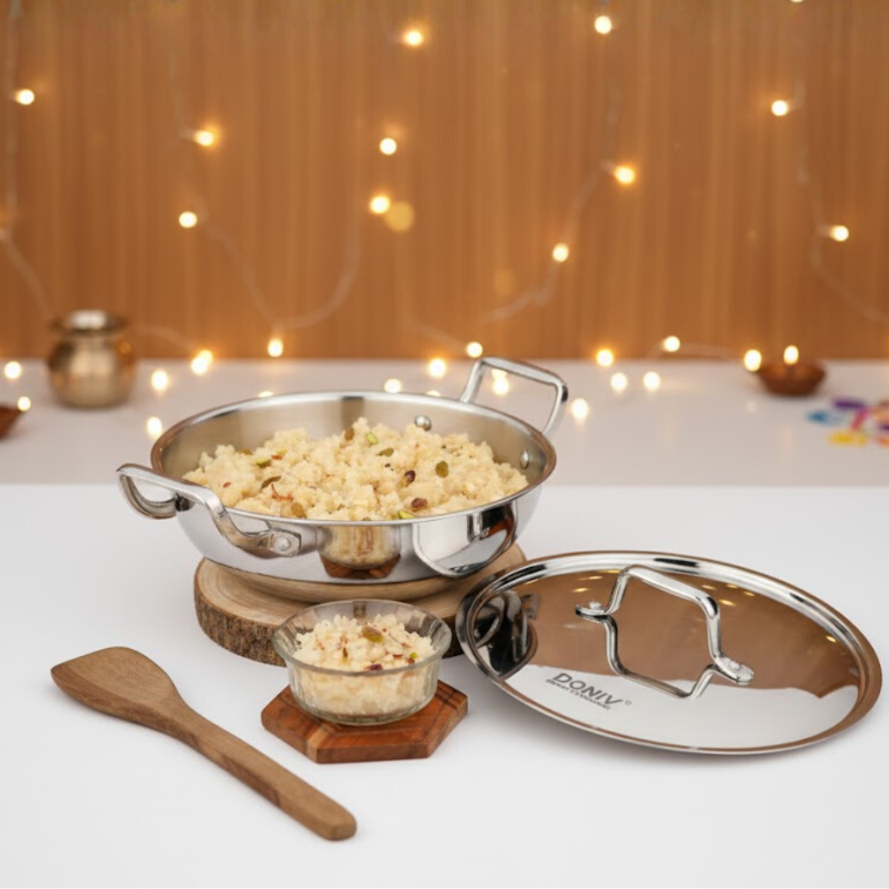 विनोद डोनिव ट्रिपली कढ़ाई ढक्कन के साथ, भारी तले वाली 3.2 लीटर गहरी कढ़ाई, साइड हैंडल के साथ, इंडक्शन और गैस स्टोव के साथ इस्तेमाल होने वाली, डिशवॉशर सुरक्षित