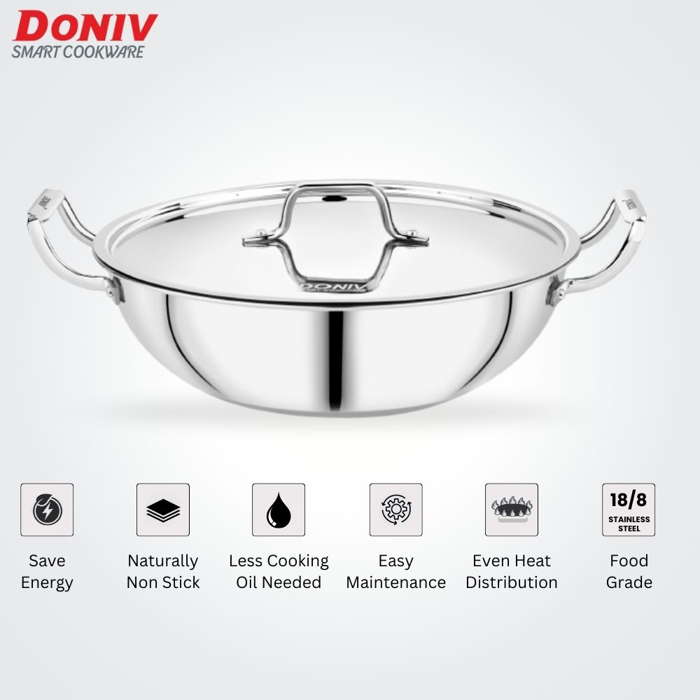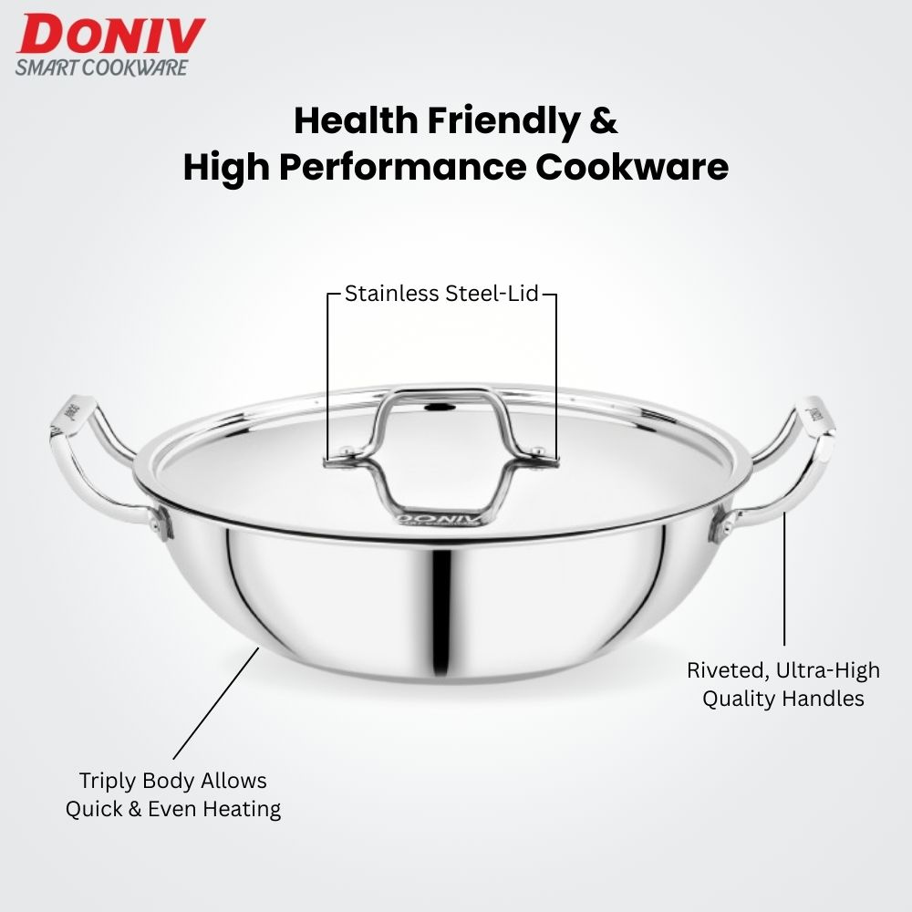 ट्रिपली स्टेनलेस स्टील की गहरी कढ़ाई कई तरह के कामों के लिए आदर्श है, जैसे डीप-फ्राइंग, स्टर-फ्राइंग और सॉटेइंग। फ़ूड-ग्रेड स्टेनलेस स्टील से बनी, यह असाधारण टिकाऊपन और एक आकर्षक, आधुनिक लुक प्रदान करती है। इसका ढक्कन गर्मी और नमी बनाए रखने में मदद करता है, जिससे आपके व्यंजन पूरी तरह से पक जाते हैं।