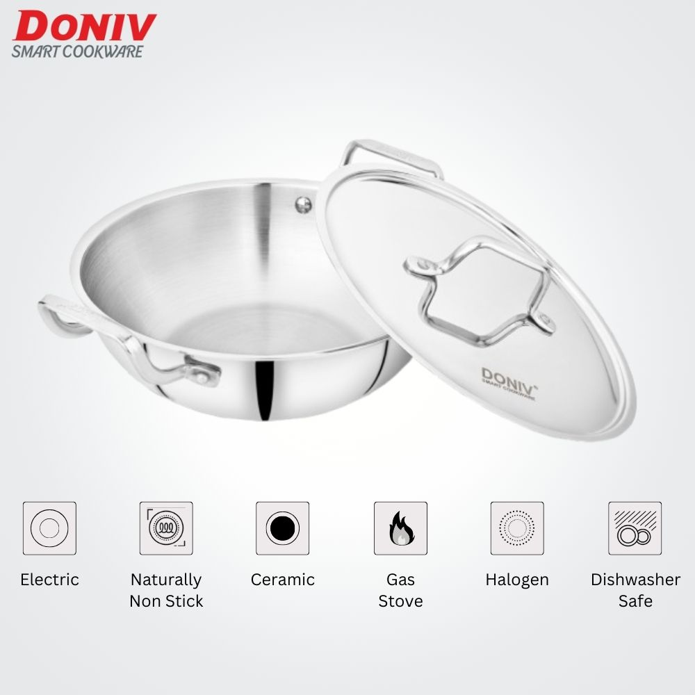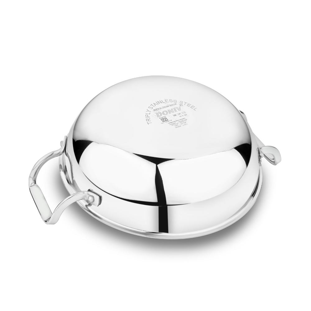 विनोद डोनिव ट्रिपली कढ़ाई ढक्कन के साथ, भारी तले वाली 4.8 लीटर गहरी कढ़ाई, साइड हैंडल के साथ, इंडक्शन और गैस स्टोव के अनुकूल, डिशवॉशर सुरक्षित