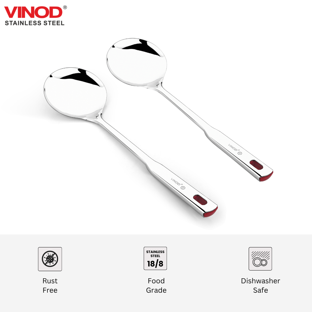 विनोद स्टेनलेस स्टील क्वींस कबदिर हैवी गेज सर्विंग स्पून सेट (2 का) I नंबर 1