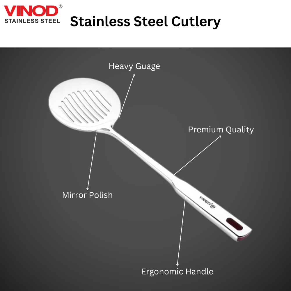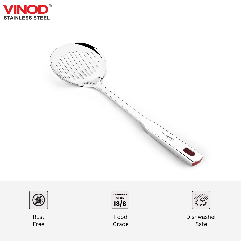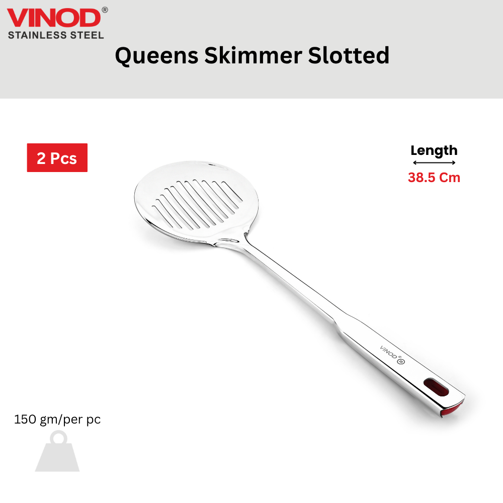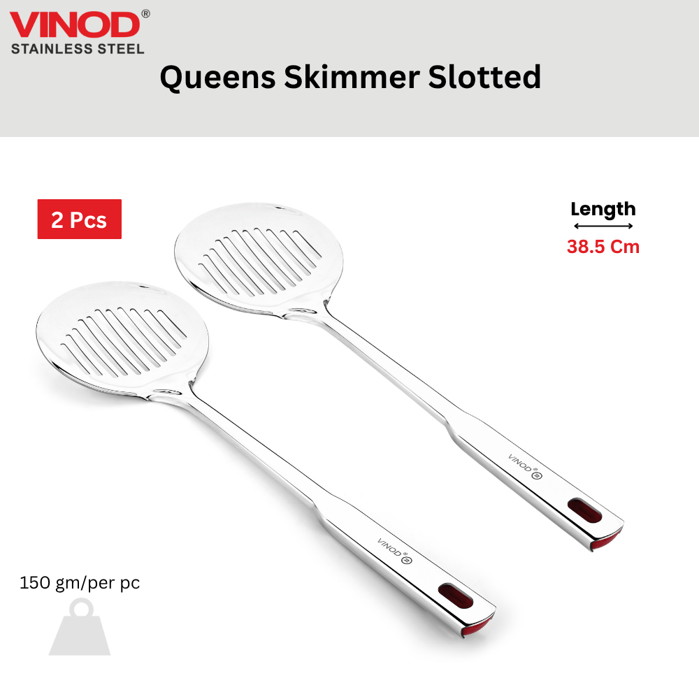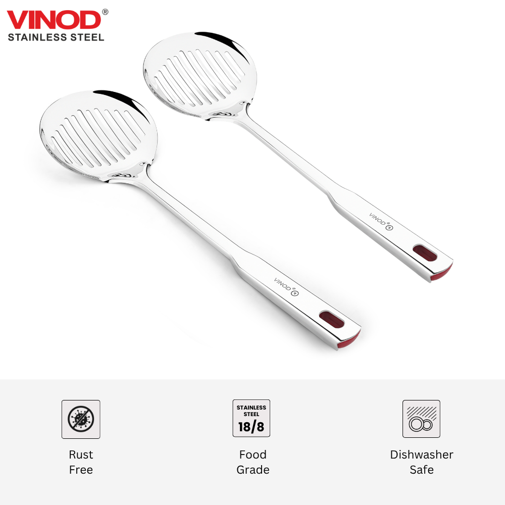 विनोद स्टेनलेस स्टील क्वींस स्किमर स्लॉटेड चम्मच तलने के लिए 38.5 सेमी I 2 का सेट I नंबर 2
