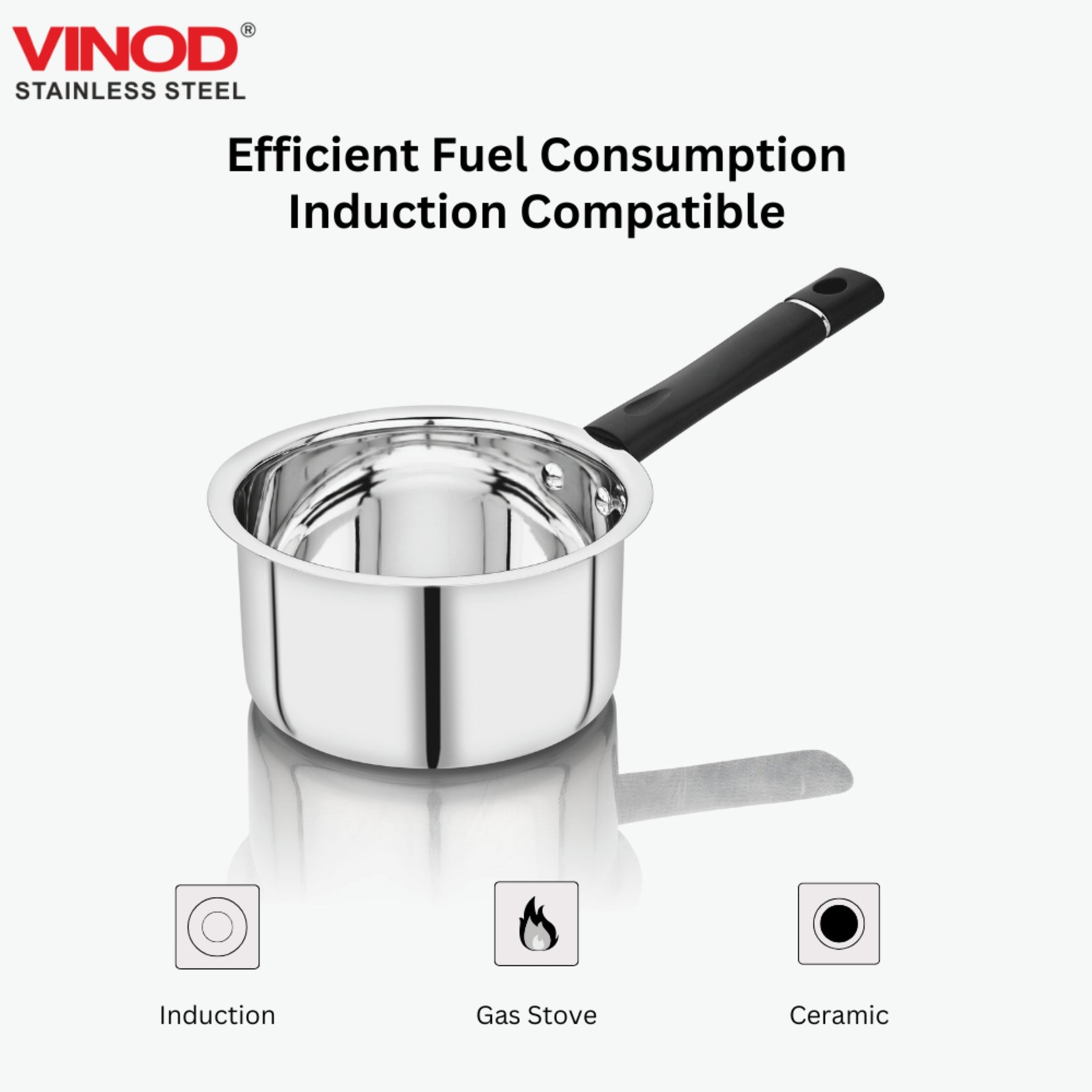 विनोद स्टेनलेस स्टील प्रीमियम सॉस पैन हैवी गेज 1800 मिली मिल्क पैन, टी पैन, इंडक्शन और गैस स्टोव के अनुकूल, डिशवॉशर सुरक्षित, किचन के लिए टिकाऊ टी पॉट