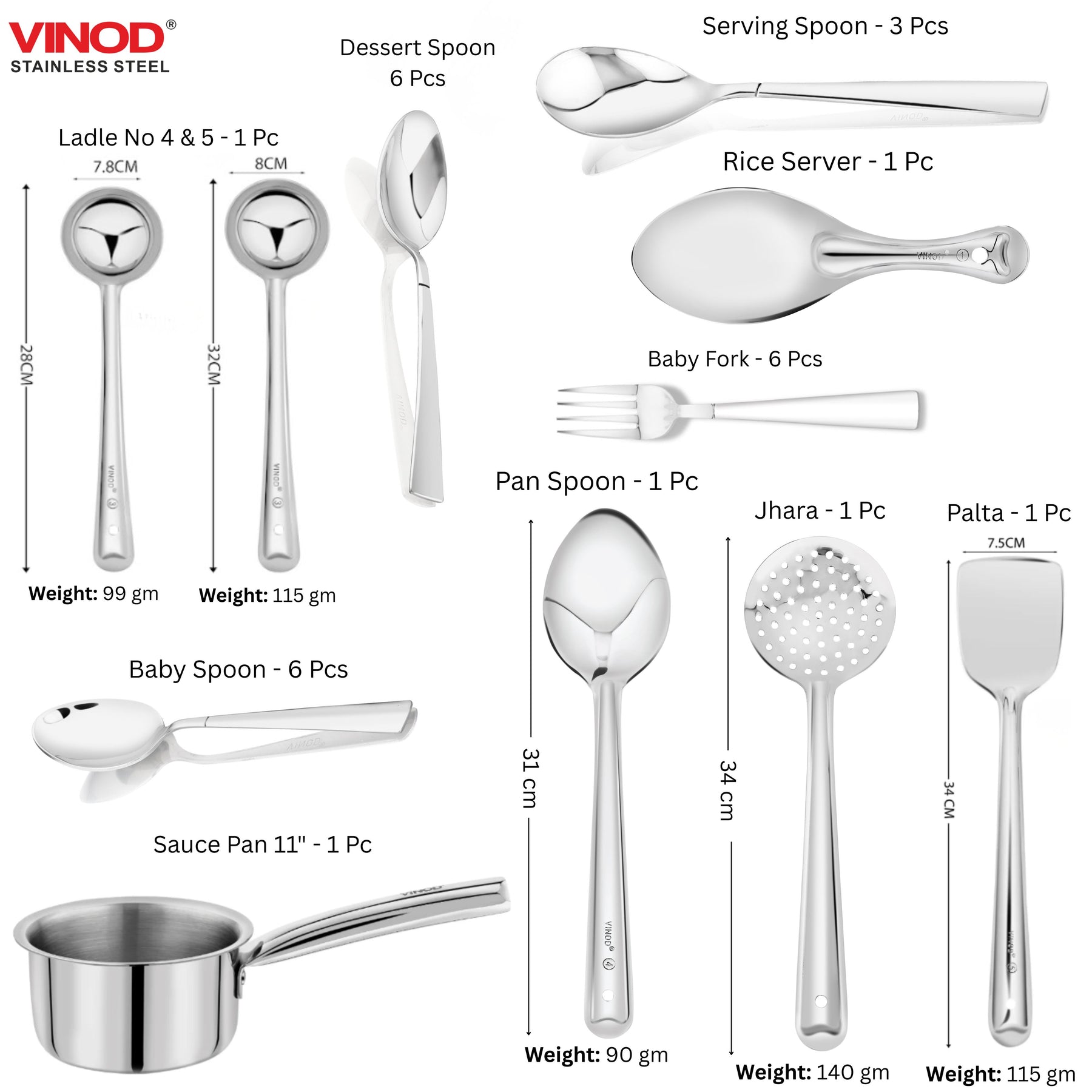 • 1 पीस सॉस पैन – 11 इंच