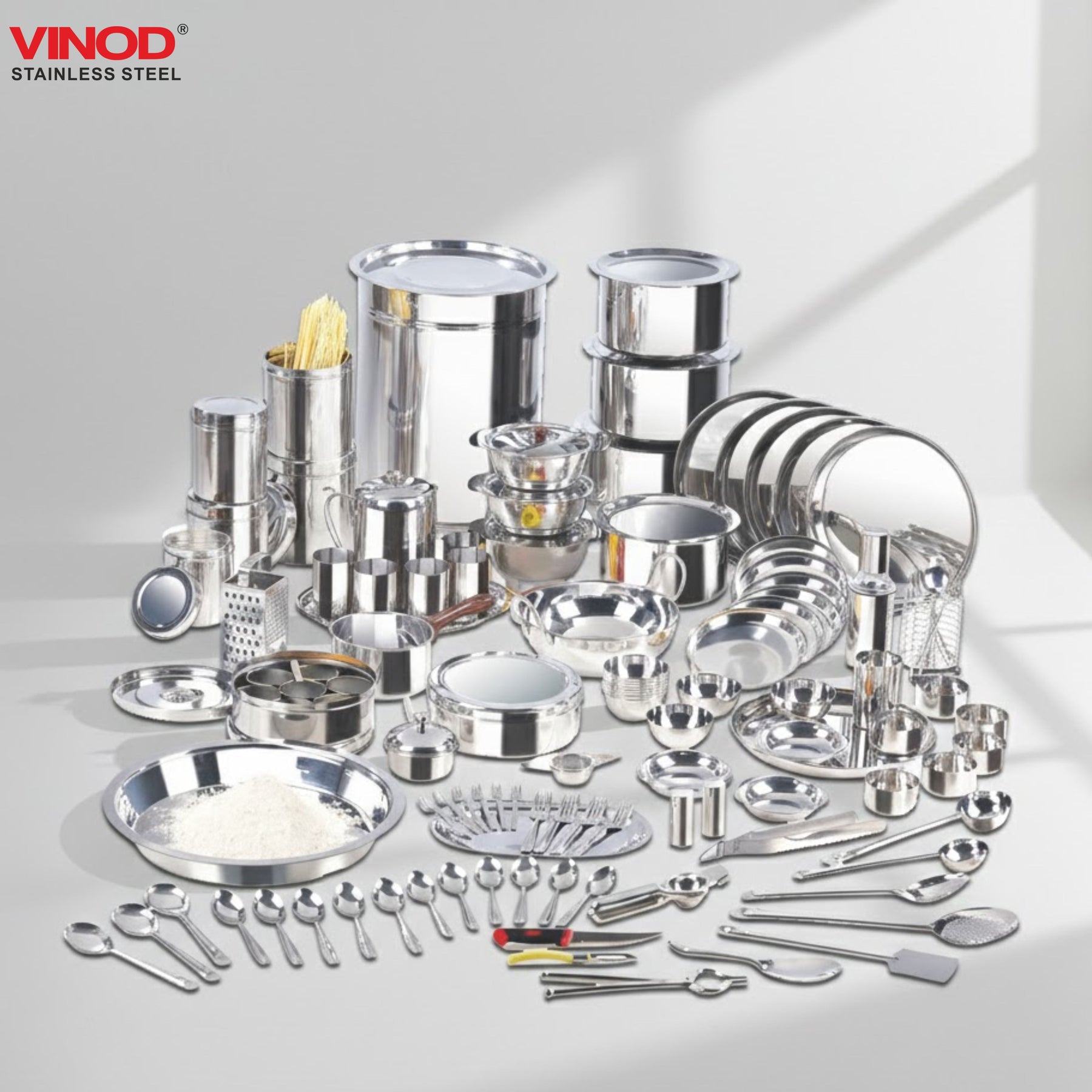 अपनी गुणवत्ता और पीढ़ियों से चले आ रहे भरोसे के साथ, विनोद भारत के हर रसोईघर और भोजनालय का एक अभिन्न अंग बन गया है। हमारा दृढ़ संकल्प हमें अपने ग्राहकों को बेजोड़ उच्च गुणवत्ता वाले स्टेनलेस स्टील के किचनवेयर , टेबलवेयर , टिफिन और सर्ववेयर परोसने के लिए प्रेरित करता है, जिसमें डिनर सेट से लेकर क्लासिक मसाला डब्बा तक, स्टेनलेस स्टील के बर्तनों की एक विस्तृत श्रृंखला शामिल है।