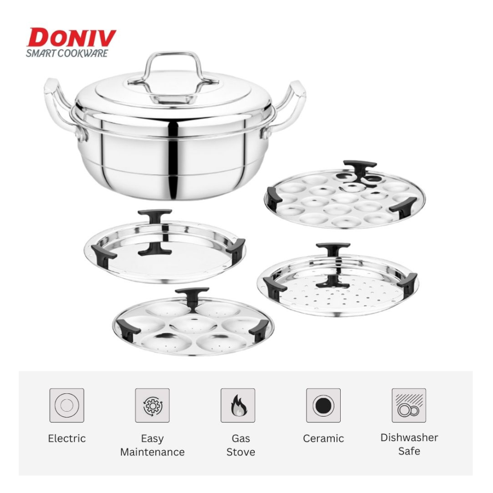 ऑल-इन-वन कढ़ाई सुविधा और दक्षता के लिए डिज़ाइन की गई है, जिसमें एक मज़बूत ढक्कन और सुरक्षित उपयोग के लिए मज़बूत हैंडल वाला एक मज़बूत स्टीमर पॉट है। इस सेट में कई स्टैकेबल इडली प्लेट शामिल हैं, जिससे आप एक साथ कई इडली स्टीम कर सकते हैं। उच्च-गुणवत्ता वाले, फ़ूड-ग्रेड स्टेनलेस स्टील से निर्मित, यह इडली कुकर टिकाऊपन और लंबे समय तक चलने वाले प्रदर्शन के लिए बनाया गया है। इसका मटीरियल जंग-रोधी, संक्षारक-रहित और साफ़ करने में आसान है, जिससे हर बार खाना पकाने की सतह साफ़ रहती है। इस बहुउद्देश्यीय पॉट का उपयोग सब्ज़ियों, मोमोज़ या अन्य व्यंजनों के लिए नियमित स्टीमर के रूप में भी किया जा सकता है, जो इसे आपकी रसोई के लिए एक मूल्यवान वस्तु बनाता है। इसका चिकना, शीशे जैसा पॉलिश किया हुआ फ़िनिश इसे एक आधुनिक और सुरुचिपूर्ण रूप देता है।