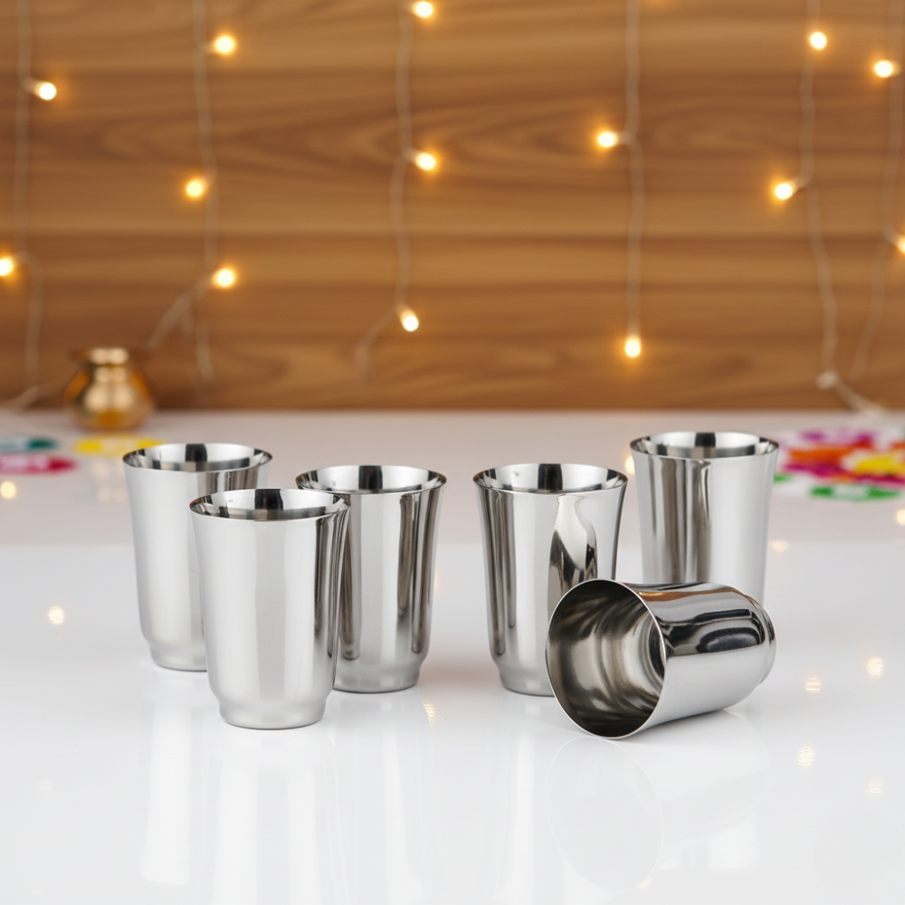 विनोद स्टेनलेस स्टील शीतल ग्लास 300 मिली - एक बॉक्स में छह ग्लास