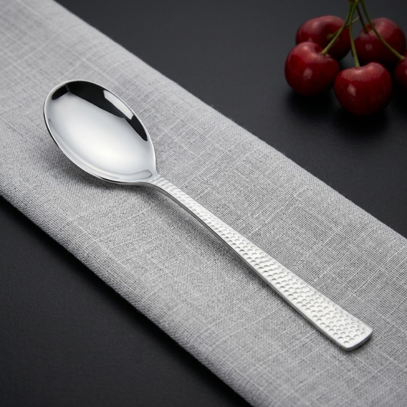 स्टेनलेस स्टील के हैमर डिज़ाइन वाले कटलरी में 3 बेबी डेज़र्ट चम्मच शामिल हैं। इस टेबलवेयर सेट का प्रत्येक टुकड़ा उच्च-गुणवत्ता वाले, भोजन-सुरक्षित, जंग-रोधी स्टेनलेस स्टील से बना है, जो टिकाऊपन और लंबे समय तक चमक सुनिश्चित करता है। हैमर डिज़ाइन आरामदायक और मज़बूत पकड़ प्रदान करता है।