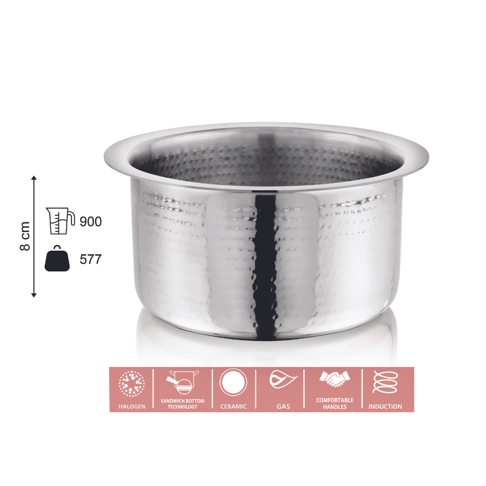 Vinod – Claro Heavy Gauge Stainless Steel Hammered Tope, 1.5 mm – Capacity 900 ml