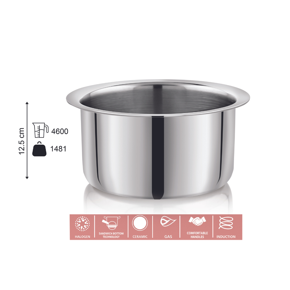 Vinod – Claro Heavy Gauge Stainless Steel Tope (Plain), 1.5 mm – Capacity 4600 ml