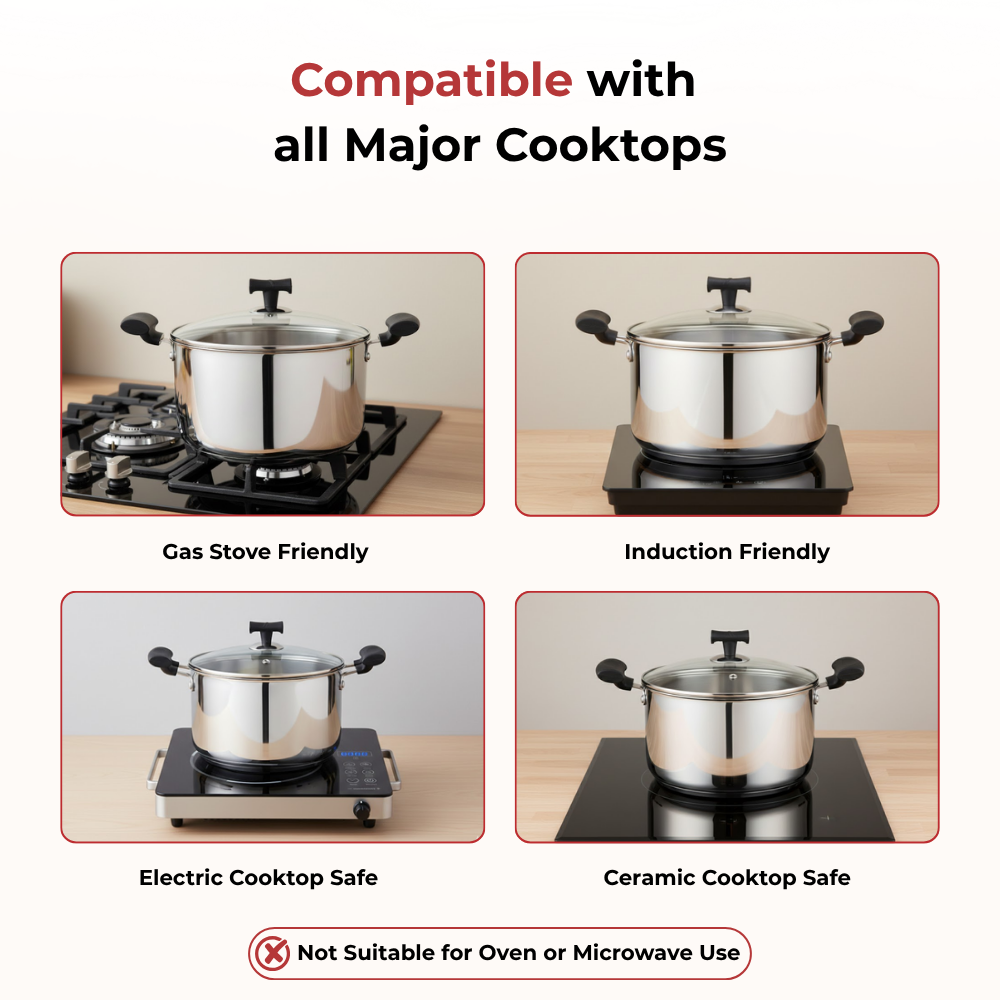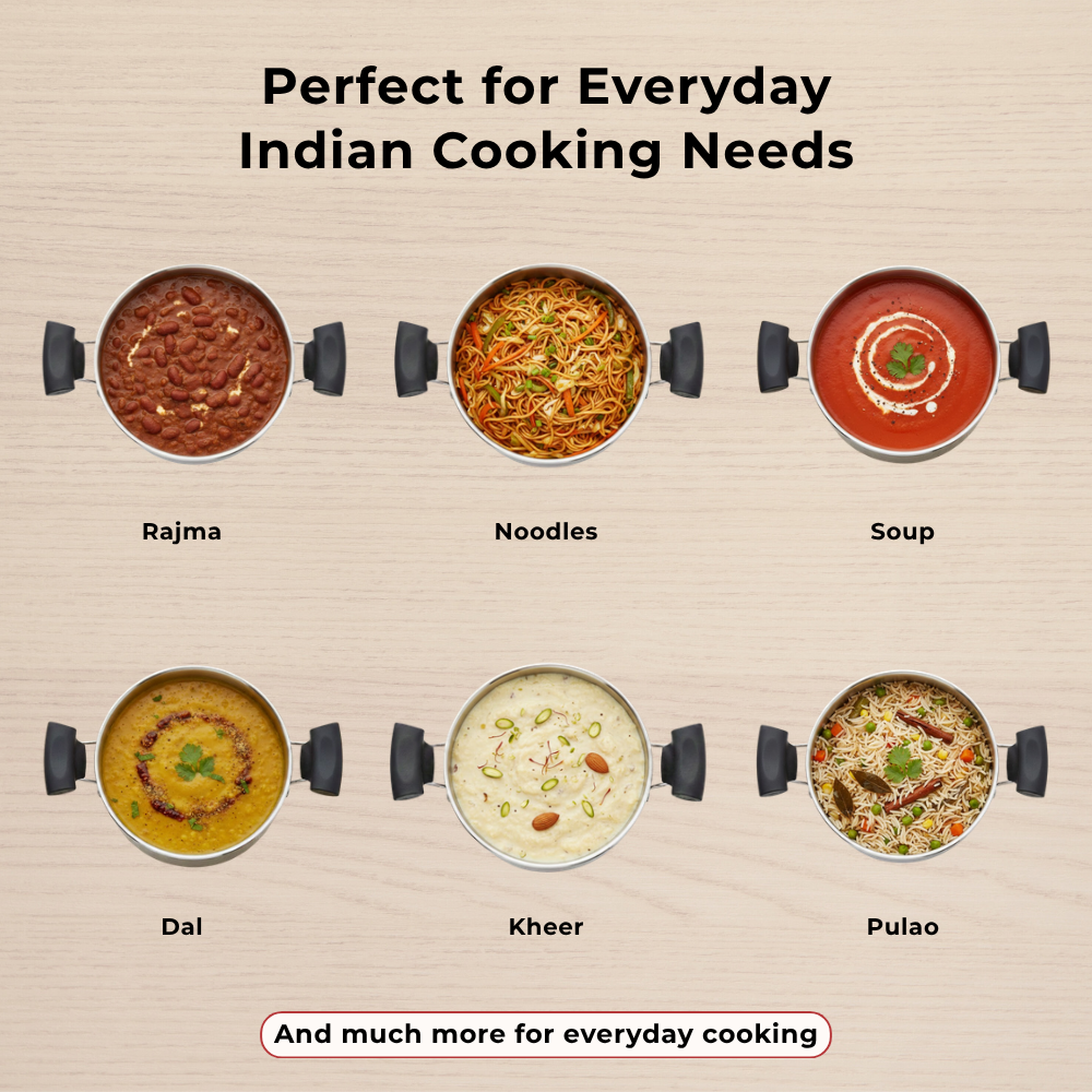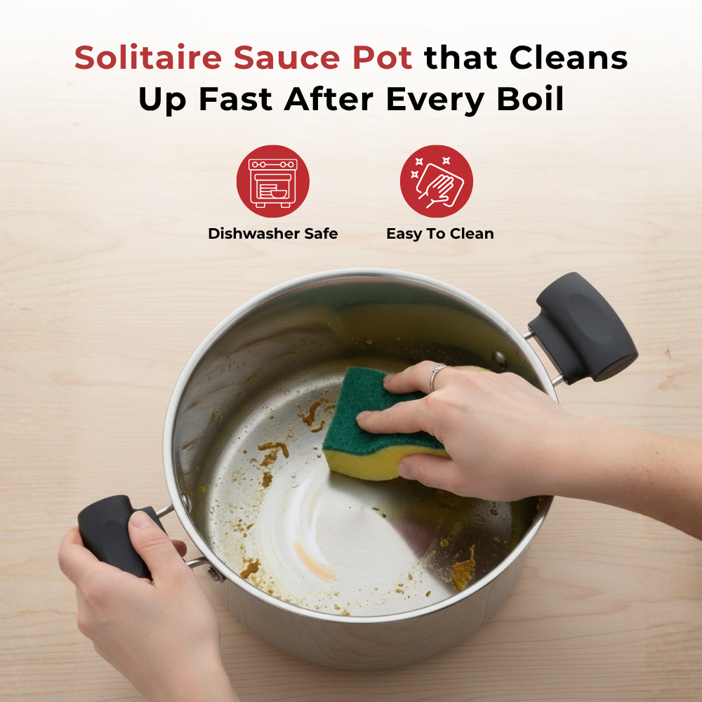 Cook those aromatic sauces, soups, and cream efficiently without worrying about them being uncooked or partially cooked. The DONIV Cookware Sandwich Bottom Solitaire Sauce Pot is specially made with high-grade stainless steel and a sandwich bottom to prevent burnt food. Mix, stir and braise the food smoothly with cool-touch handles and Glass lid with exceptional qualities and features this Sauce Pot is perfect for every occasion.
