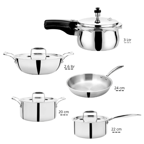 - Doniv Titanium Triply Stainless Steel 5 piece must have Cookware Set for every kitchen, It is a perfect combo set for cooking.