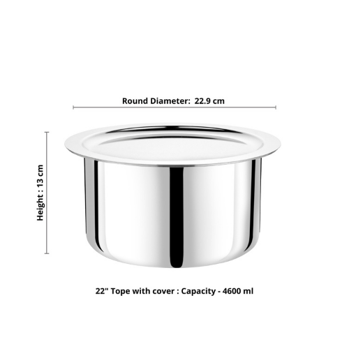 VINOD Doniv Titanium Triply Stainless Steel Tope with Cover 22 cms, 4600 ml Capacity, Induction Friendly