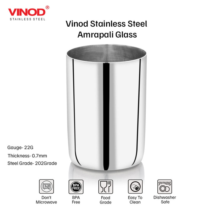 - Keep your beverages taste fresher in Vinod Amrapali stainless steel glasses rather than plastic tumblers! Stainless steel is free of bpa and harmful toxins, Steel Glasses keeps you fit and healthy