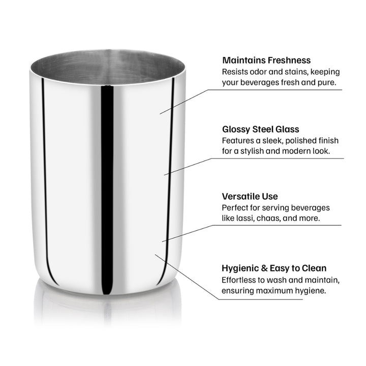 Vinod Stainless Steel Amrapali Glass – Six Glasses in one Box (300 ml)