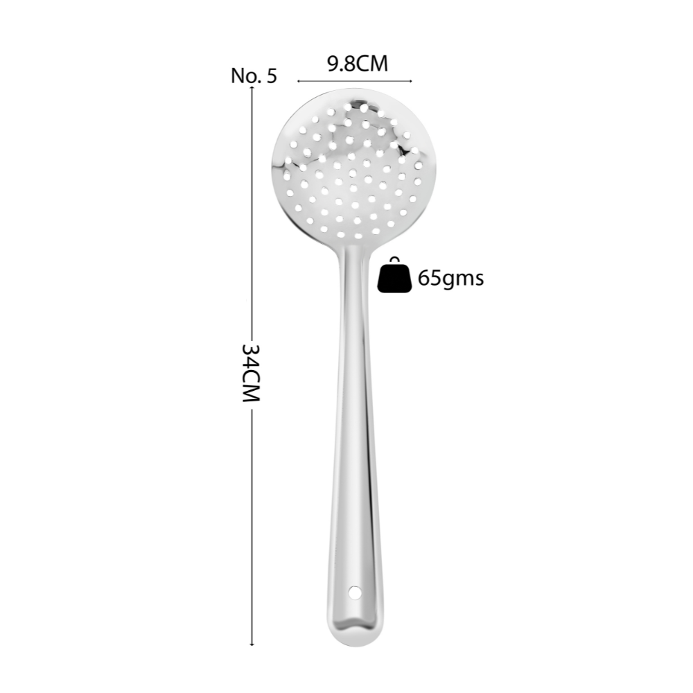 - Useful: A versatile set of 2 skimmers, perfect for skimming, straining and serving in various culinary tasks. Ideal for Puris, Pakodas, Nuggets, Fried Items, Rice and Serving.