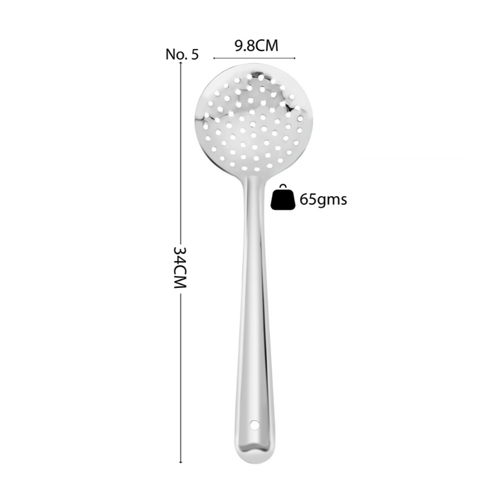 - Package Content: Set of 2 Stainless Steel Skimmers, Steel Jharni Size 34cm.